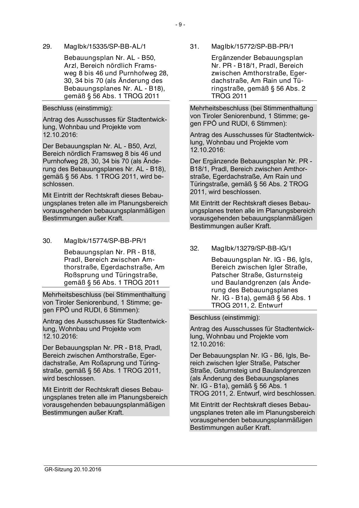 Der Bebauungsplan Nr. PR - B18, Pradl,