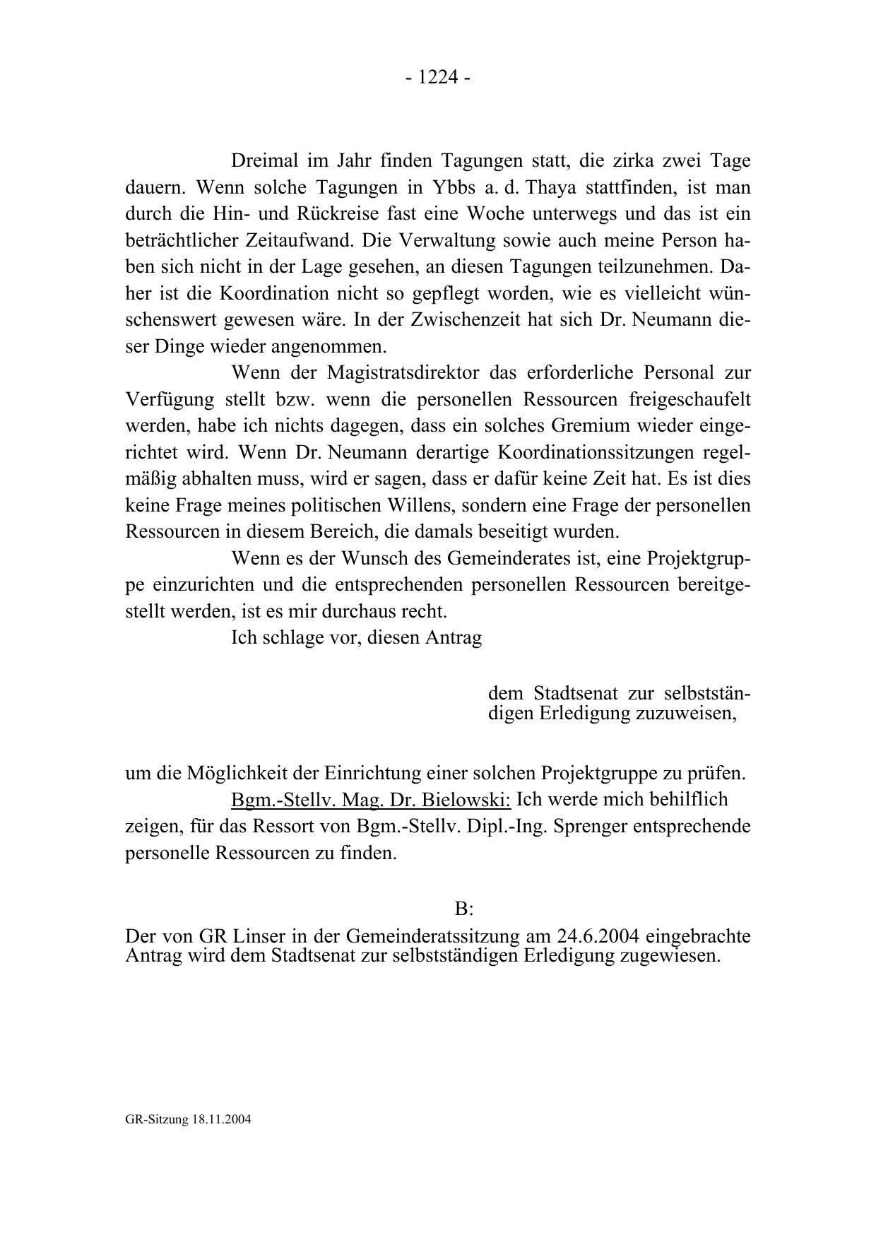 Der von GR Linser in der Gemeinderatssitzung am 24.6.2004 eingebrachte