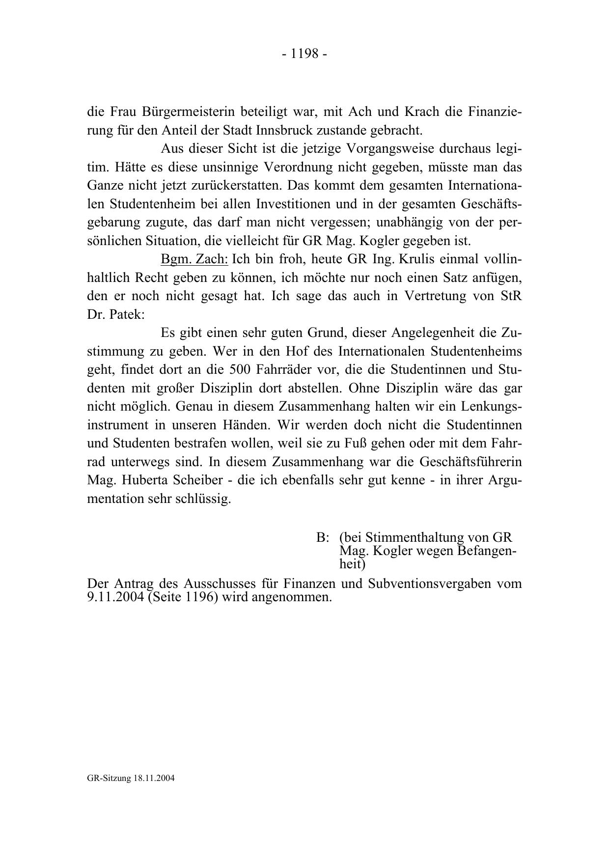 9.11.2004 (Seite 1196) wird angenommen.