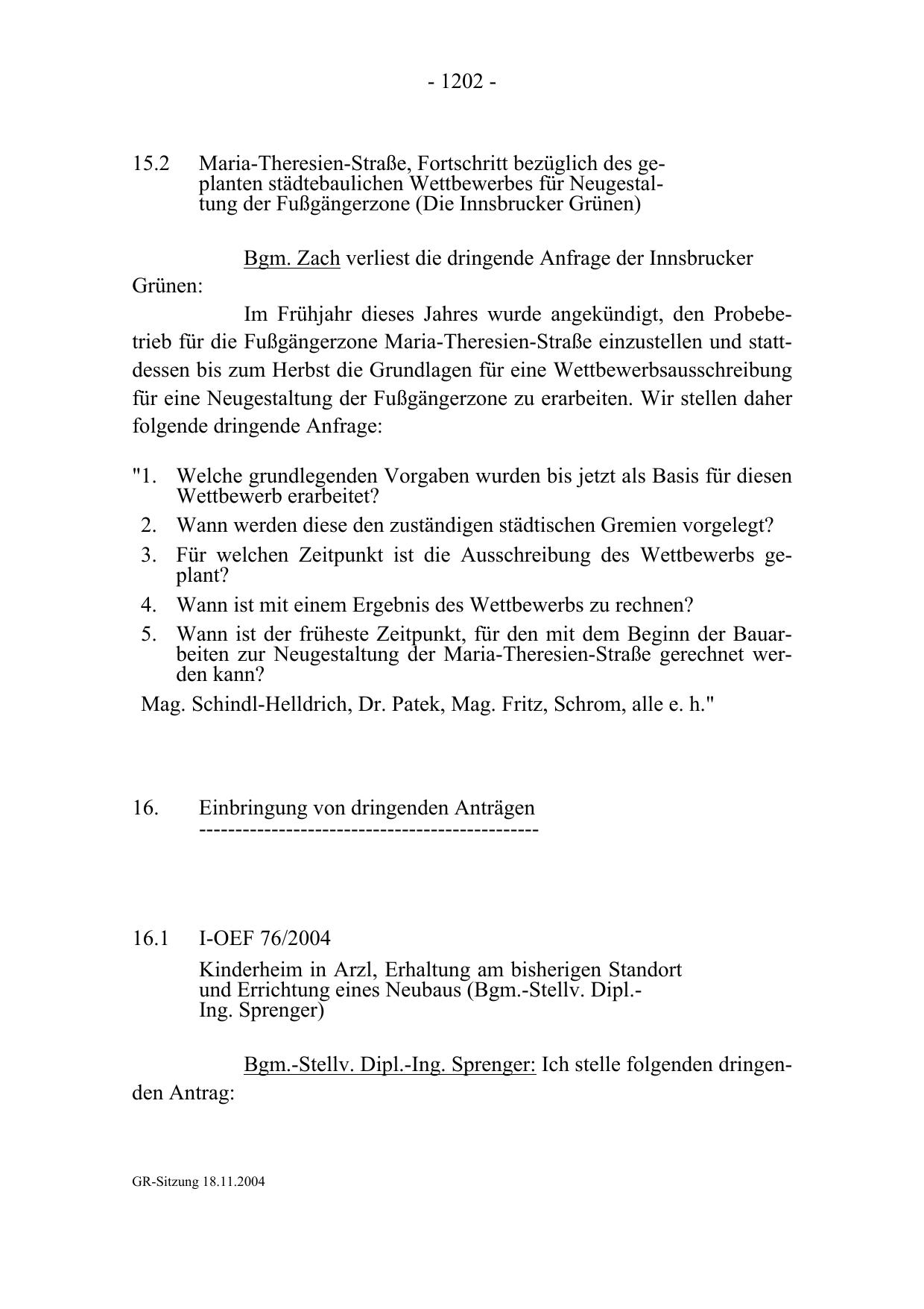 Bgm. Zach verliest die dringende Anfrage der Innsbrucker