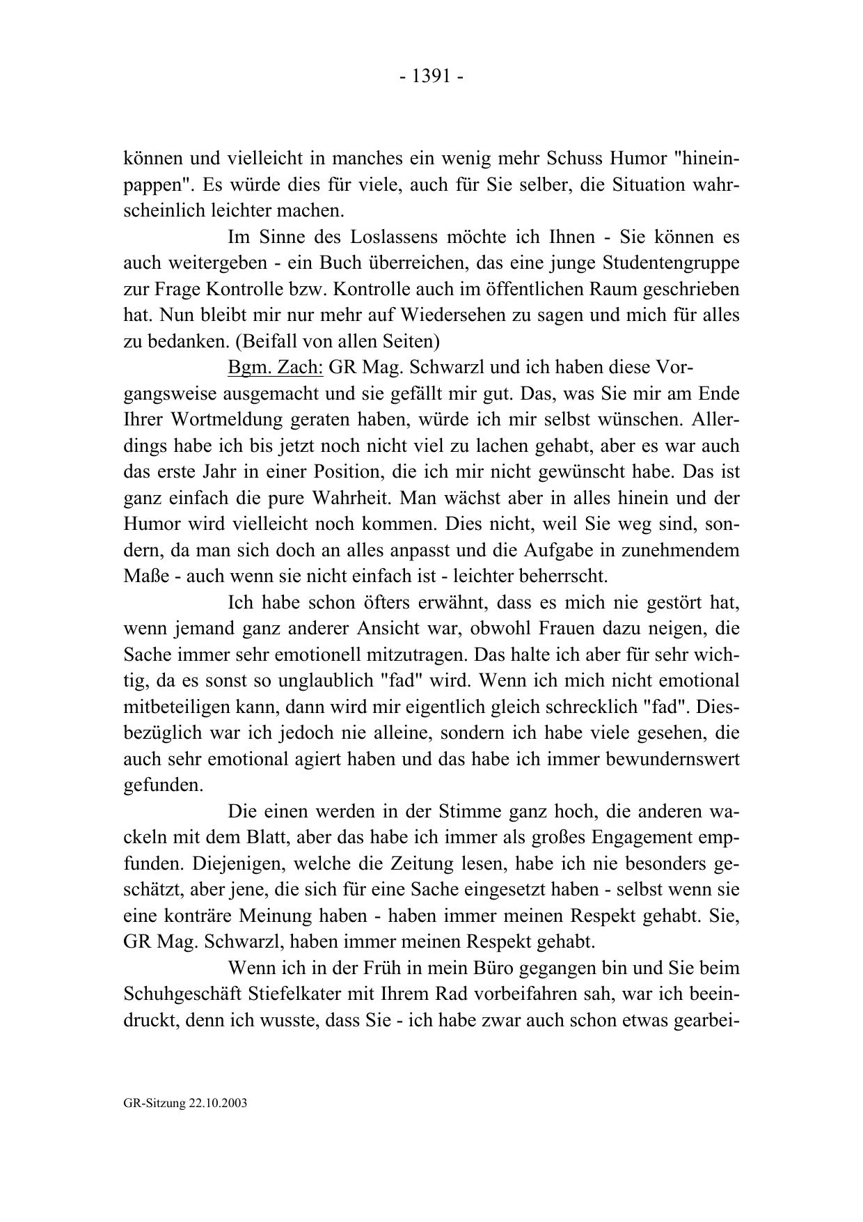 Bgm. Zach: GR Mag. Schwarzl und ich haben diese Vorgangsweise ausgemacht und sie gefällt mir gut. Das, was Sie mir am Ende