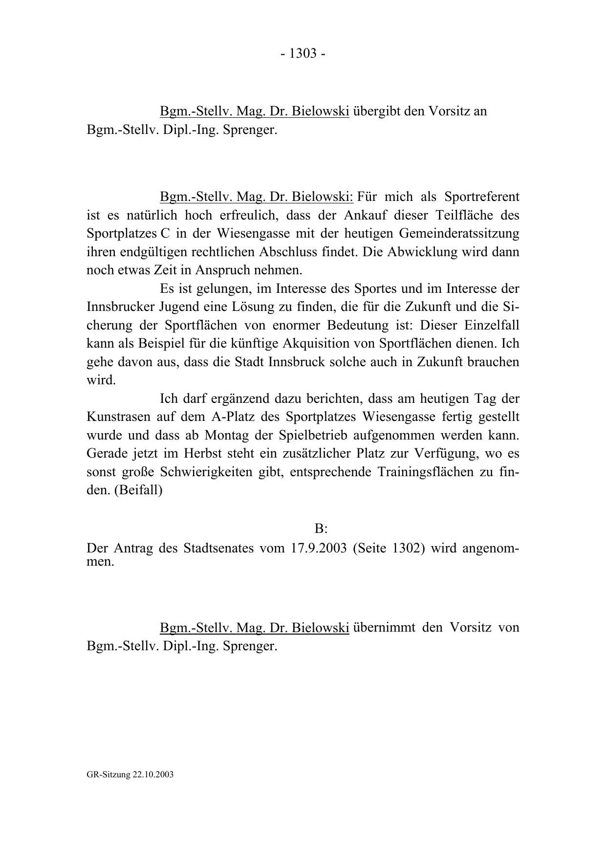 Der Antrag des Stadtsenates vom 17.9.2003 (Seite 1302) wird angenommen.