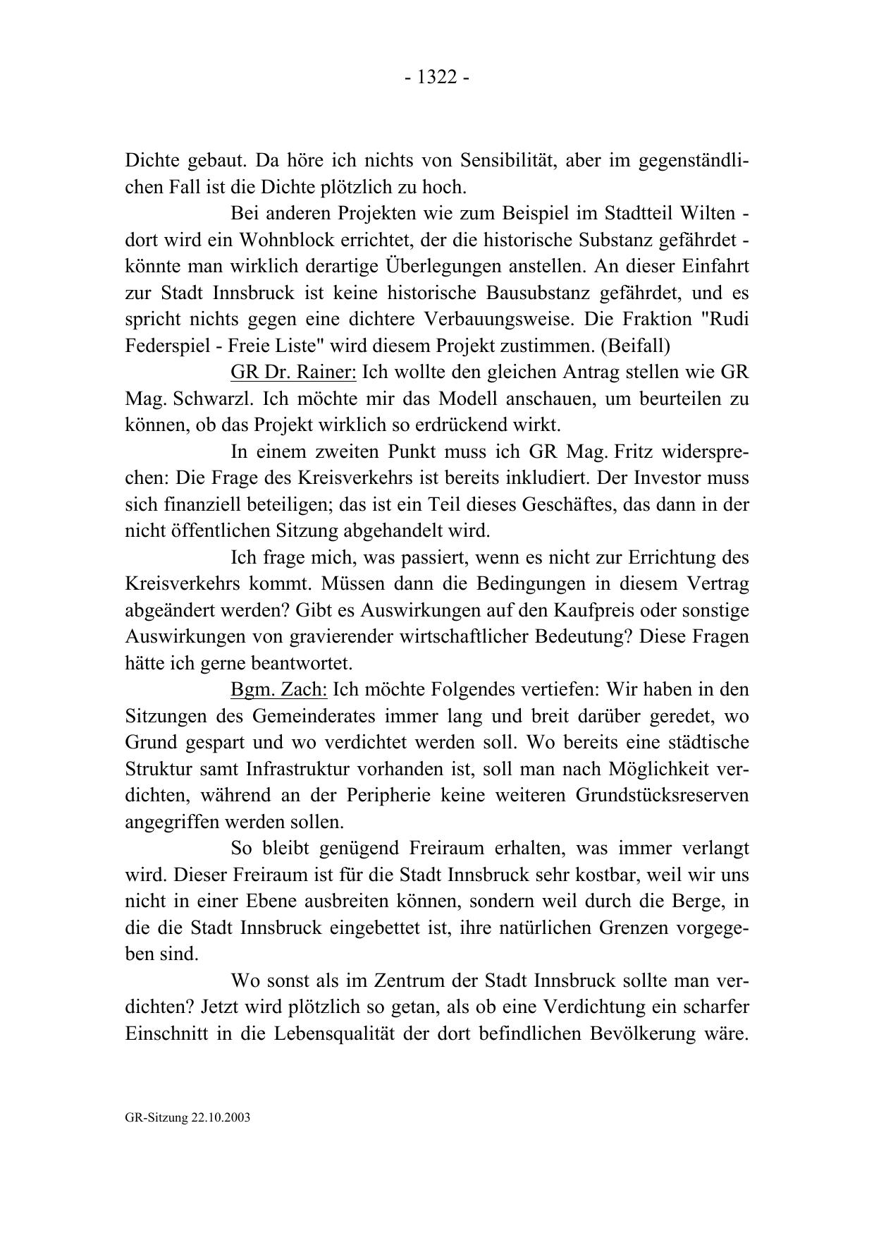 Bei anderen Projekten wie zum Beispiel im Stadtteil Wilten dort wird ein Wohnblock errichtet, der die historische Substanz gefährdet könnte man wirklich derartige Überlegungen anstellen. An dieser Einfahrt
