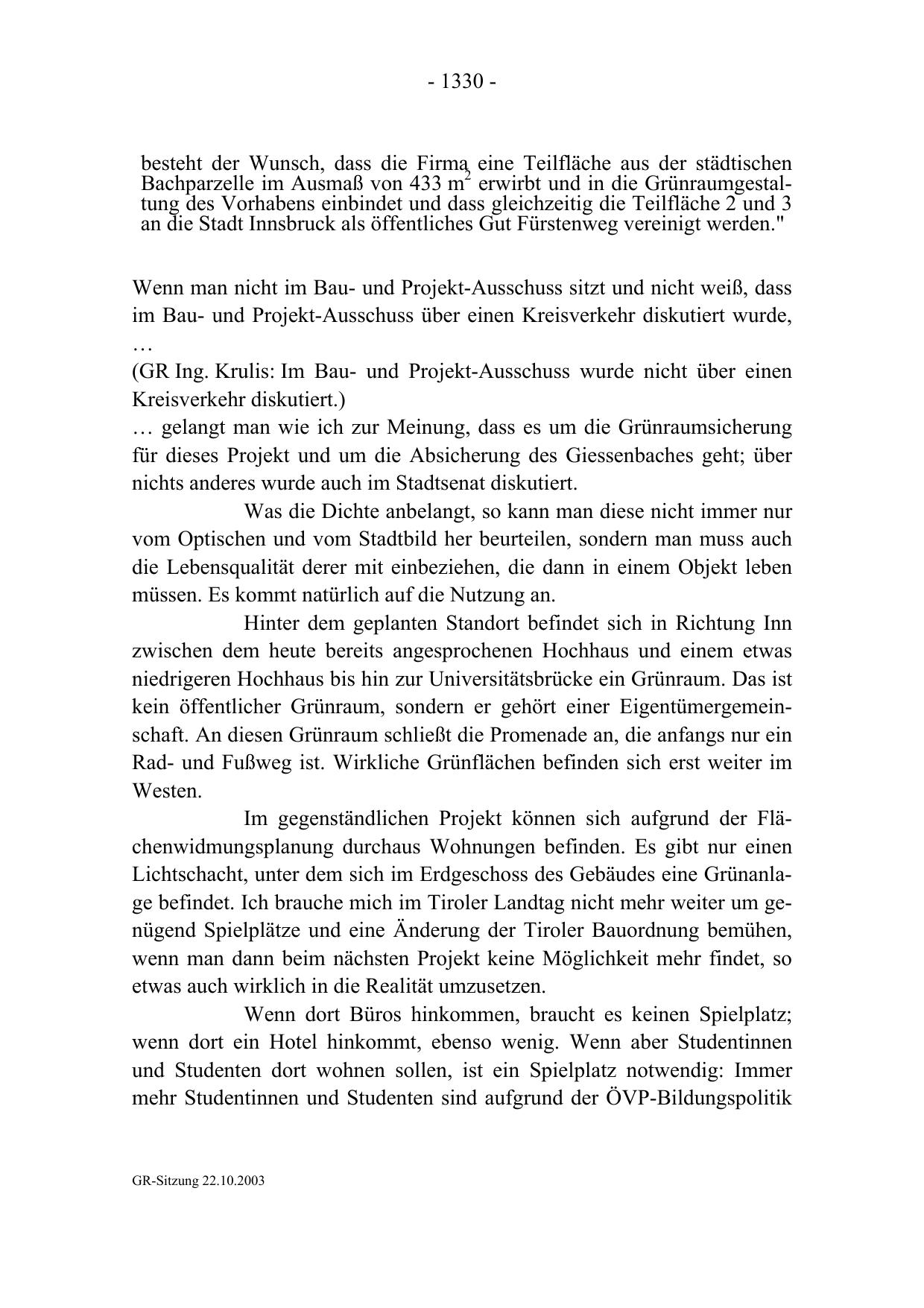 (GR Ing. Krulis: Im Bau- und Projekt-Ausschuss wurde nicht über einen