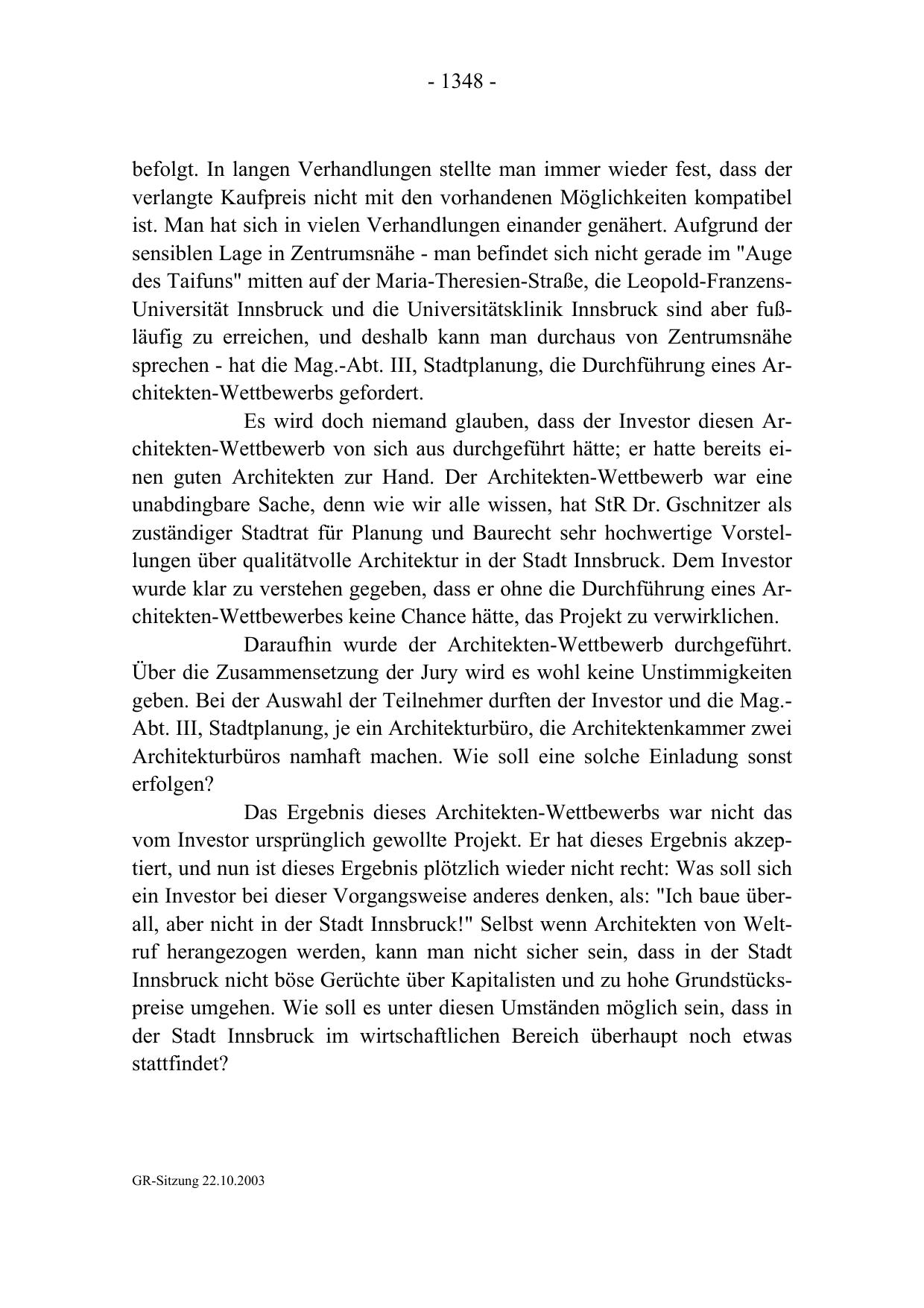 ein Investor bei dieser Vorgangsweise anderes denken, als: "Ich baue überall, aber nicht in der Stadt Innsbruck!" Selbst wenn Architekten von Weltruf herangezogen werden, kann man nicht sicher sein, dass in der Stadt