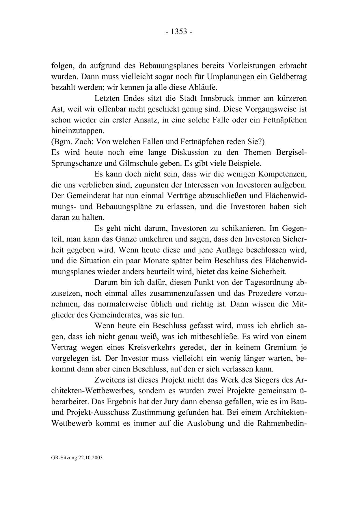 Es wird heute noch eine lange Diskussion zu den Themen BergiselSprungschanze und Gilmschule geben. Es gibt viele Beispiele.