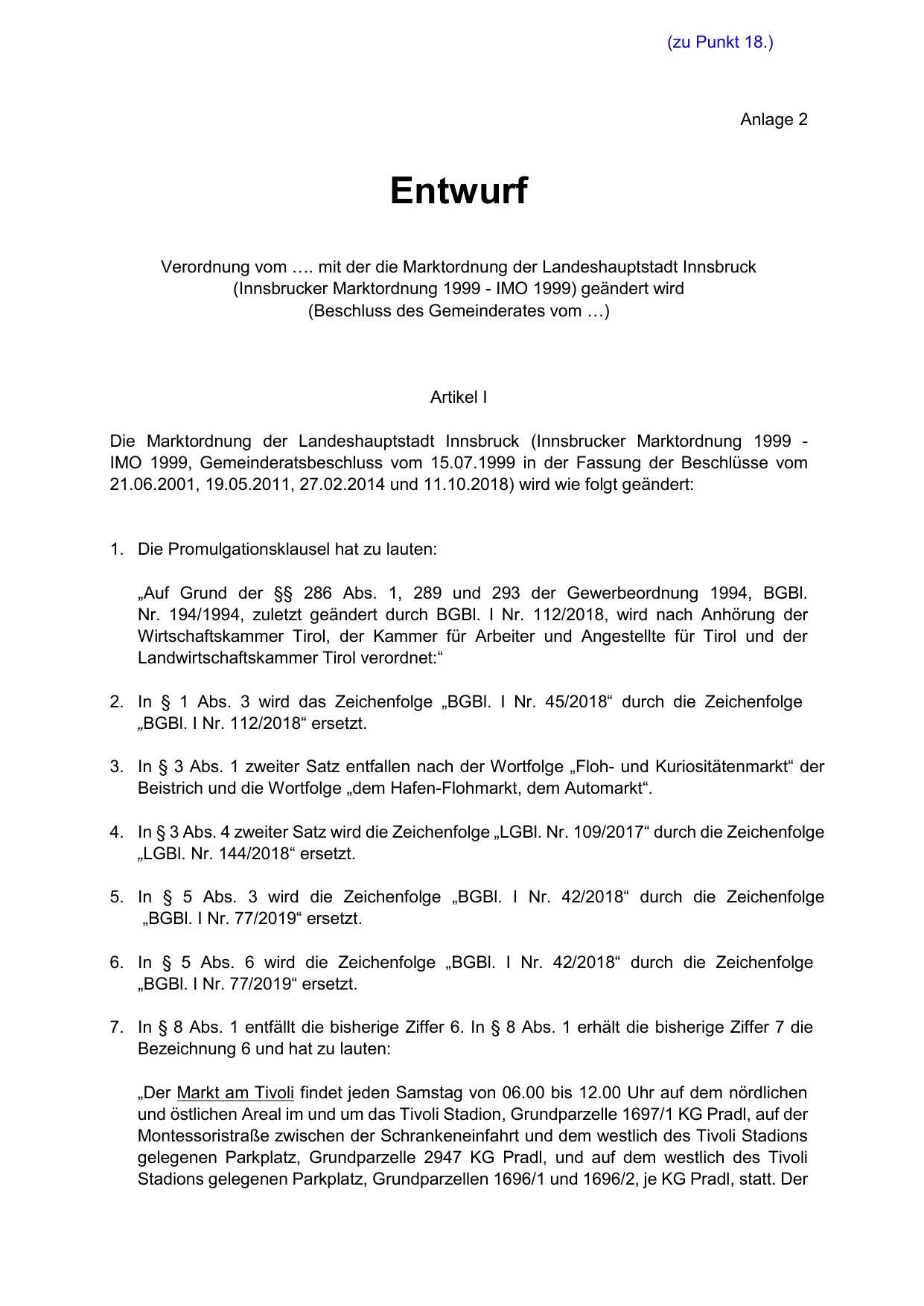Verordnung vom …. mit der die Marktordnung der Landeshauptstadt Innsbruck