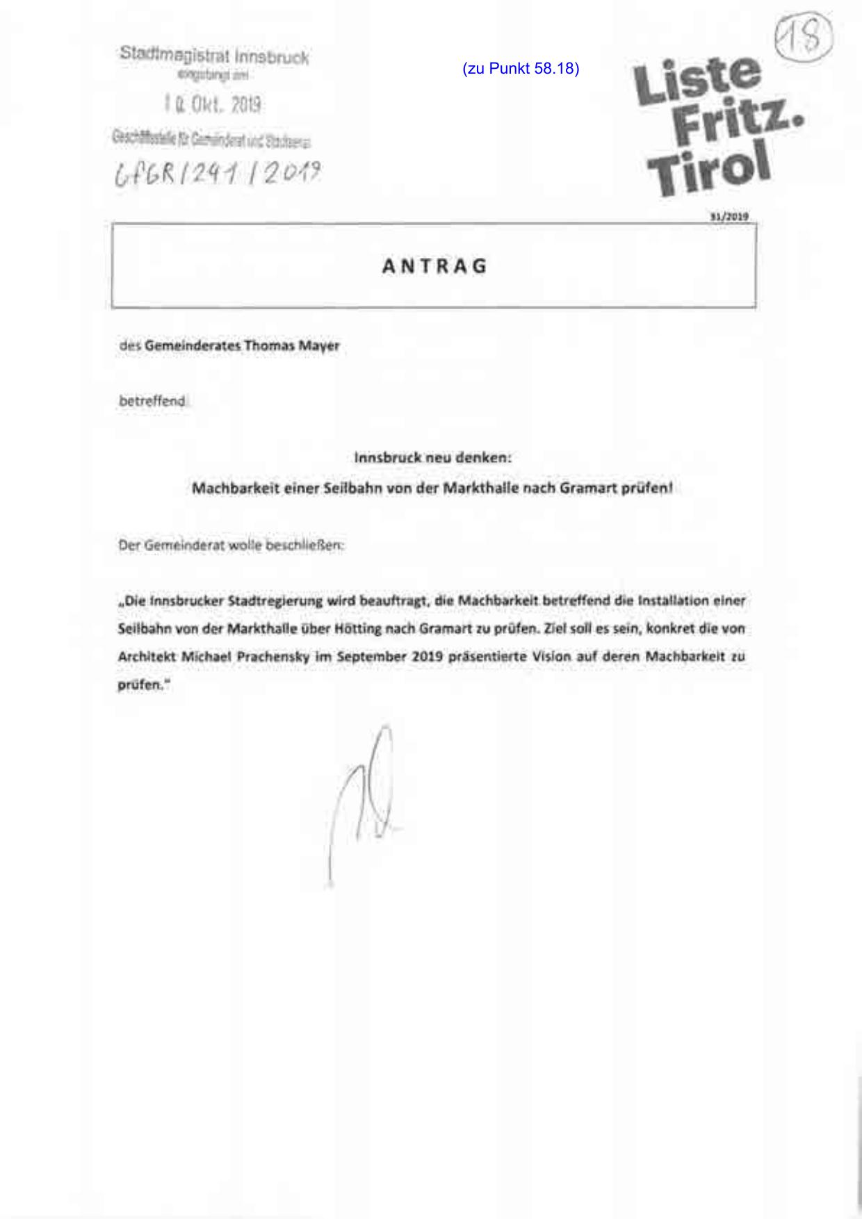 Seilbahn von der Markthalle über Hötting nach Gramart zu prüfen. Ziel soll es sein, konkret die von