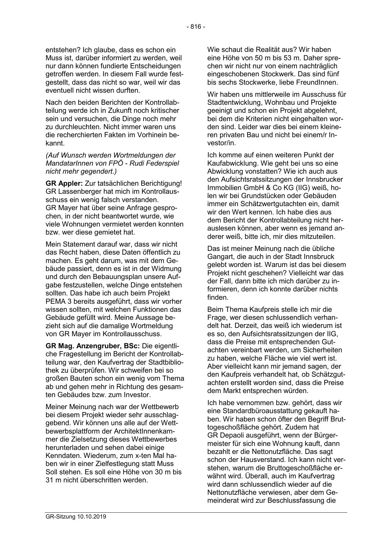 GR Depaoli ausgeführt, wenn der Bürgermeister für sich eine Wohnung kauft, dann