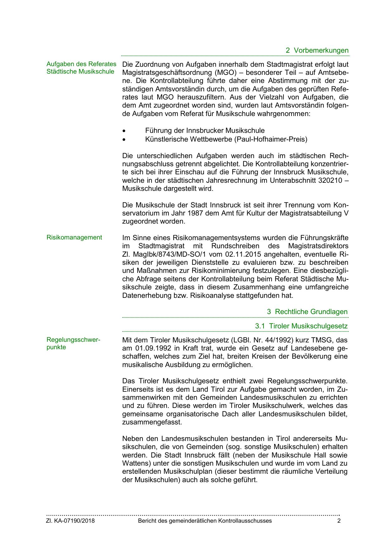 und Maßnahmen zur Risikominimierung festzulegen. Eine diesbezügliche Abfrage seitens der Kontrollabteilung beim Referat Städtische Musikschule zeigte, dass in diesem Zusammenhang eine umfangreiche