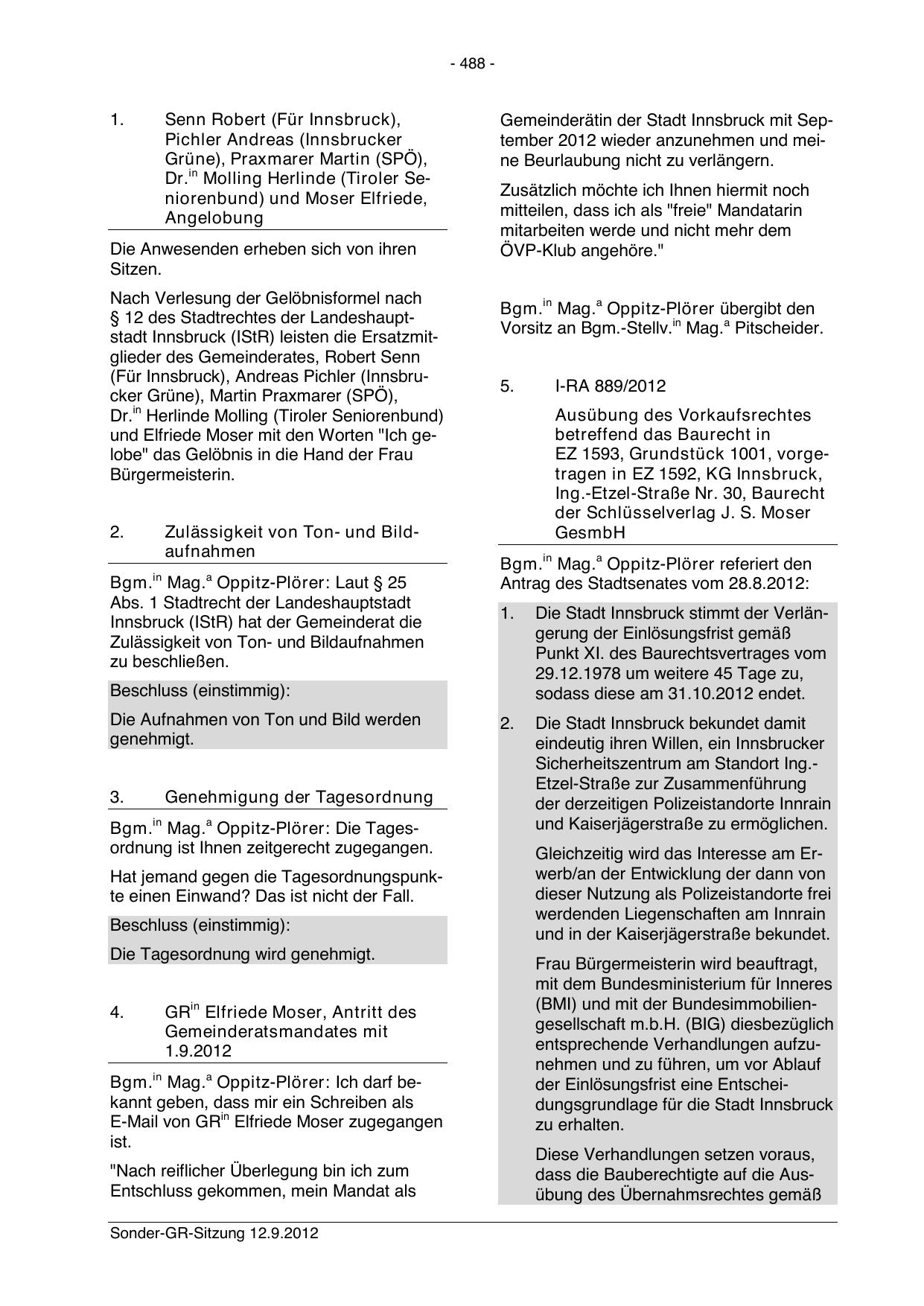 § 12 des Stadtrechtes der Landeshauptstadt Innsbruck (IStR) leisten die Ersatzmitglieder des Gemeinderates, Robert Senn