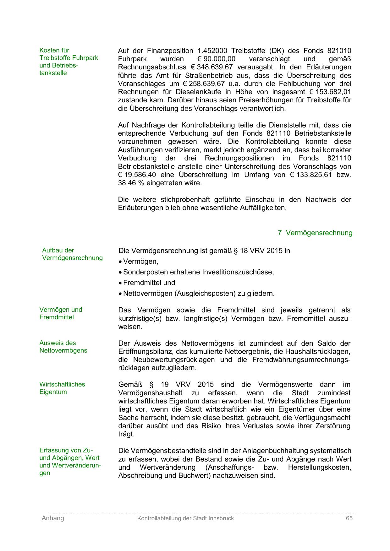 Gemäß § 19 VRV 2015 sind die Vermögenswerte dann im