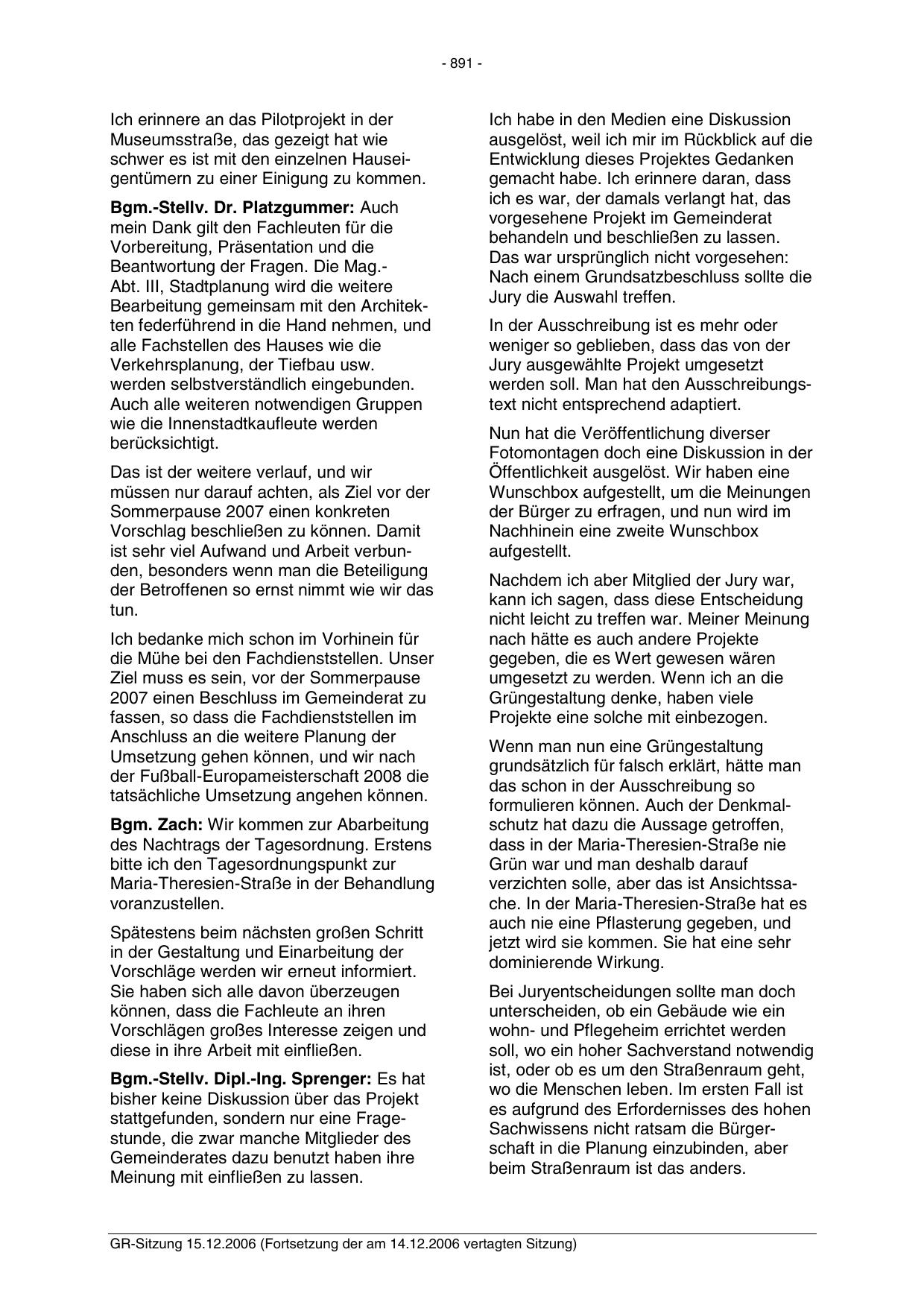 GR-Sitzung 15.12.2006 (Fortsetzung der am 14.12.2006 vertagten Sitzung)
