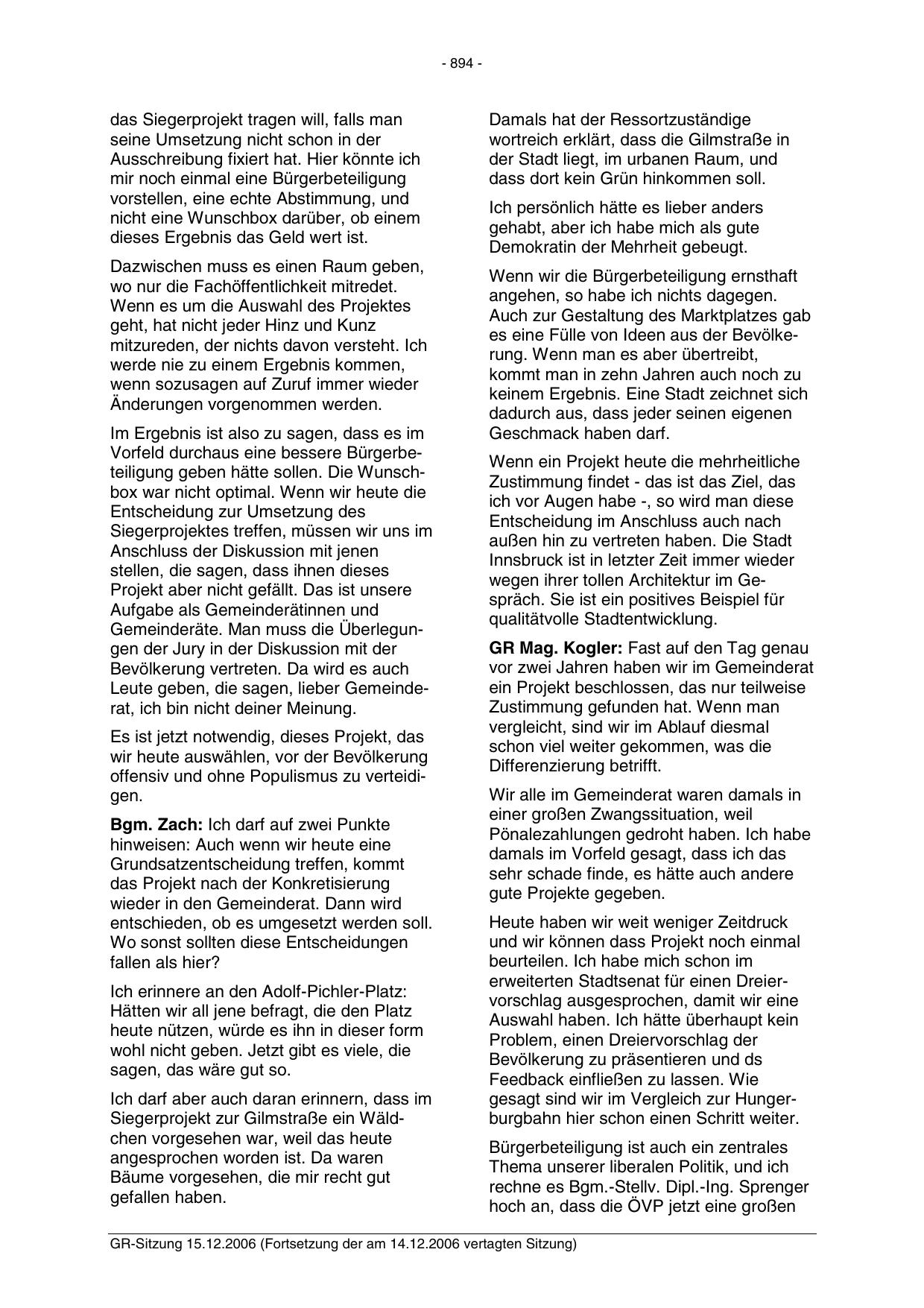 GR-Sitzung 15.12.2006 (Fortsetzung der am 14.12.2006 vertagten Sitzung)