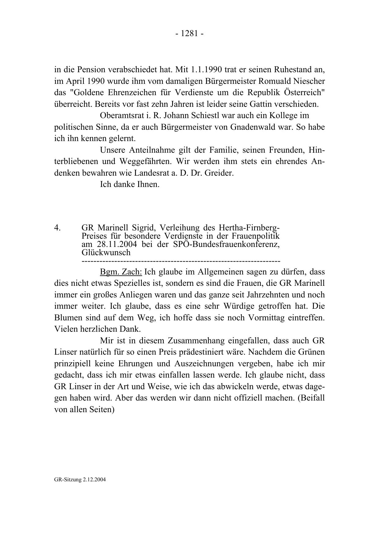 GR Linser in der Art und Weise, wie ich das abwickeln werde, etwas dagegen haben wird. Aber das werden wir dann nicht offiziell machen. (Beifall