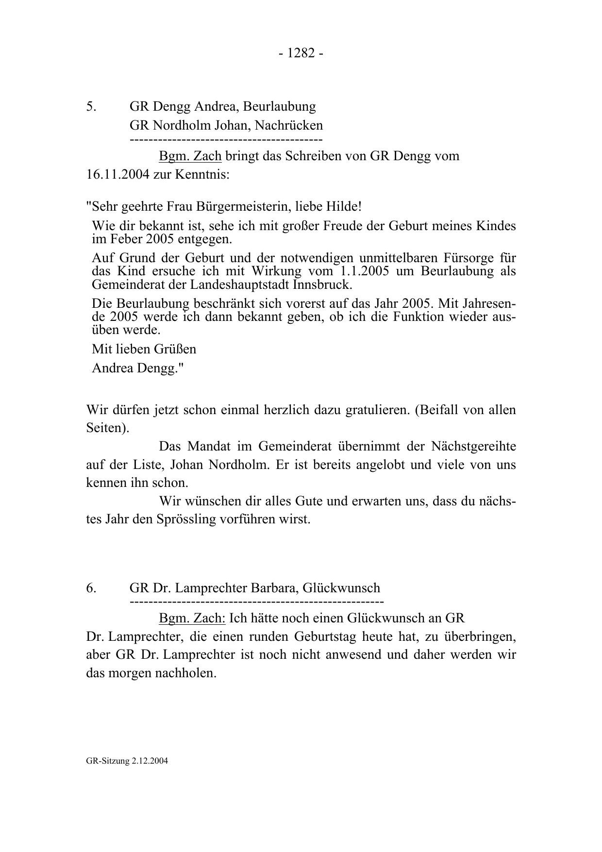 -----------------------------------------------------Bgm. Zach: Ich hätte noch einen Glückwunsch an GR
