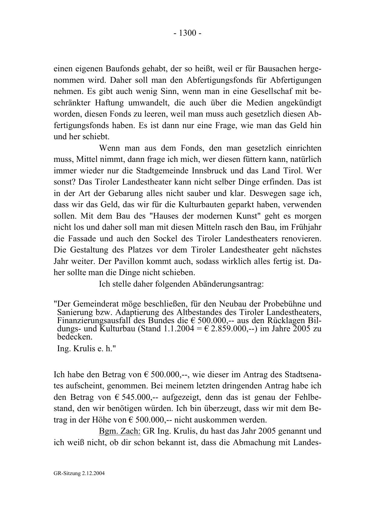 Bgm. Zach: GR Ing. Krulis, du hast das Jahr 2005 genannt und