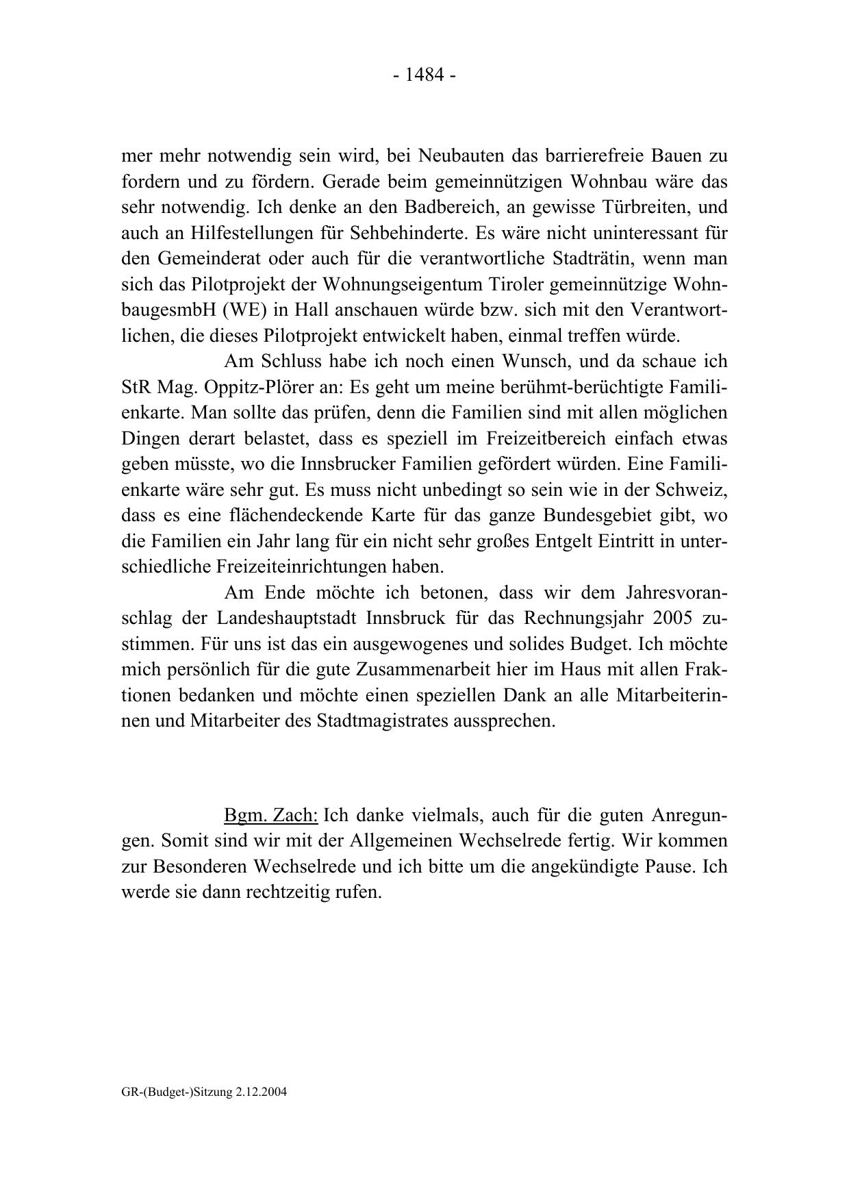 GR-(Budget-)Sitzung 2.12.2004