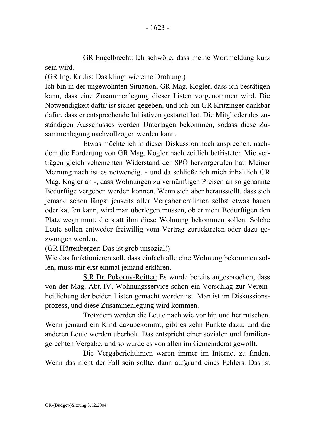GR-(Budget-)Sitzung 3.12.2004