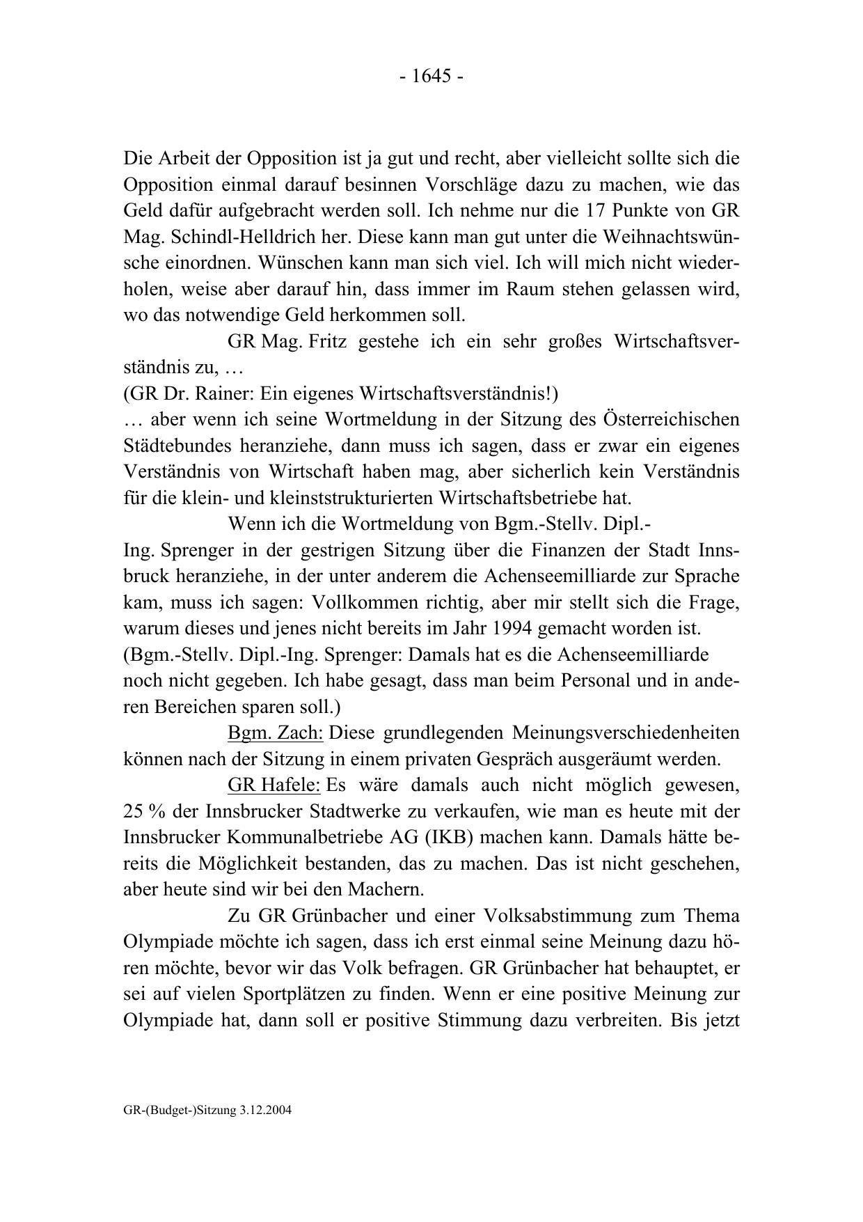 GR-(Budget-)Sitzung 3.12.2004