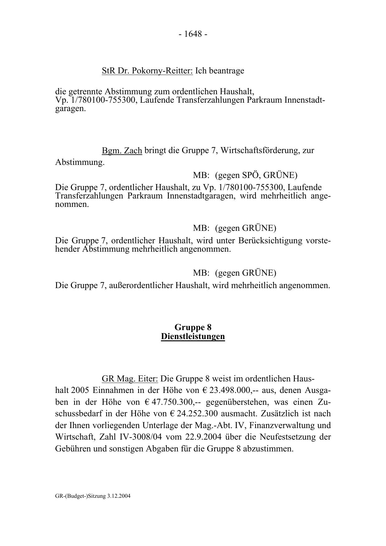 Die Gruppe 7, ordentlicher Haushalt, wird unter Berücksichtigung vorstehender Abstimmung mehrheitlich angenommen.