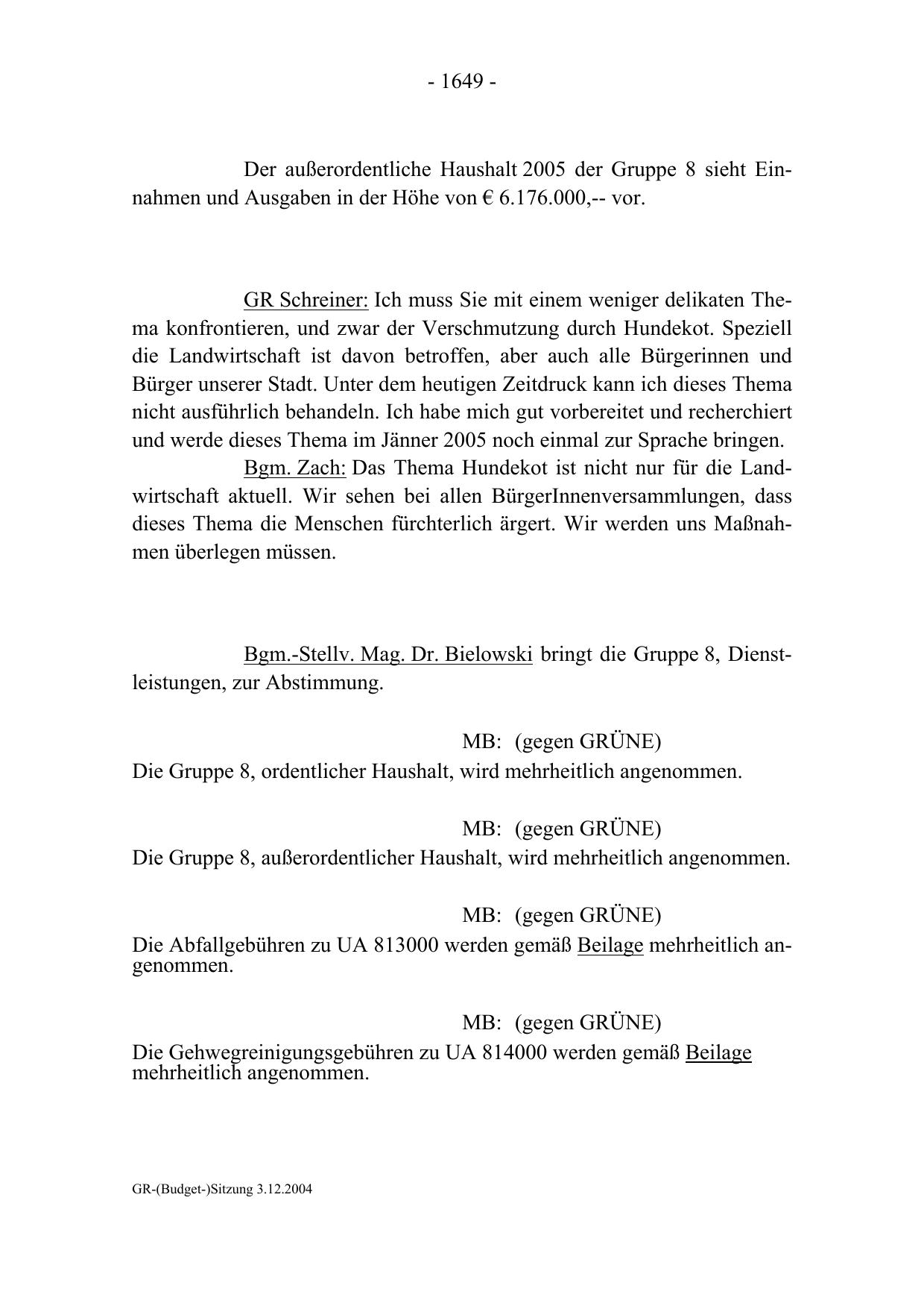 Der außerordentliche Haushalt 2005 der Gruppe 8 sieht Einnahmen und Ausgaben in der Höhe von € 6.176.000,-- vor.