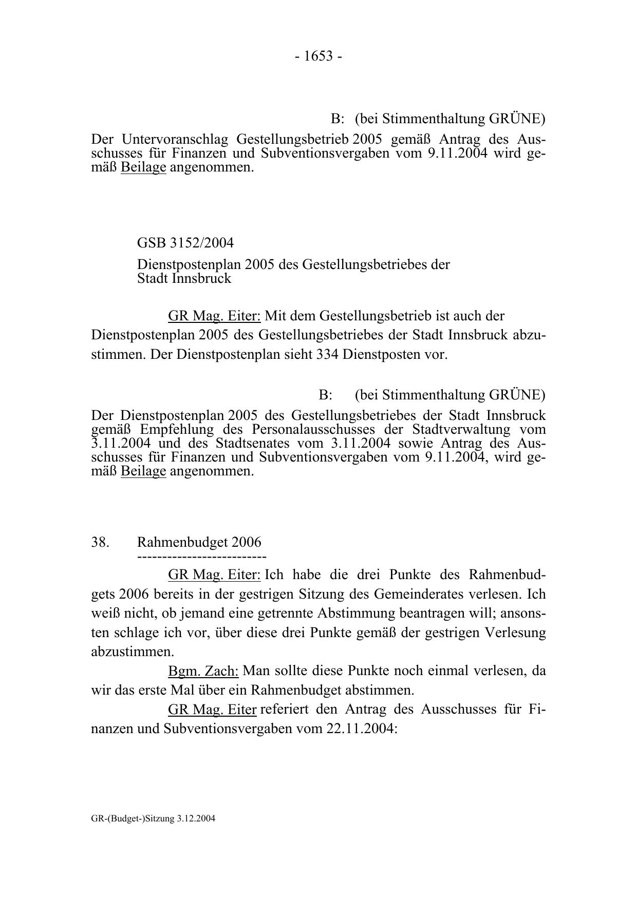 GR-(Budget-)Sitzung 3.12.2004
