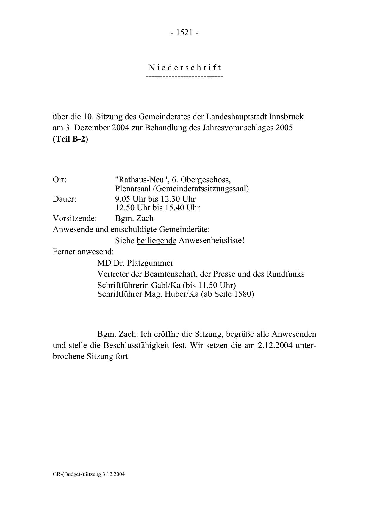 Bgm. Zach: Ich eröffne die Sitzung, begrüße alle Anwesenden