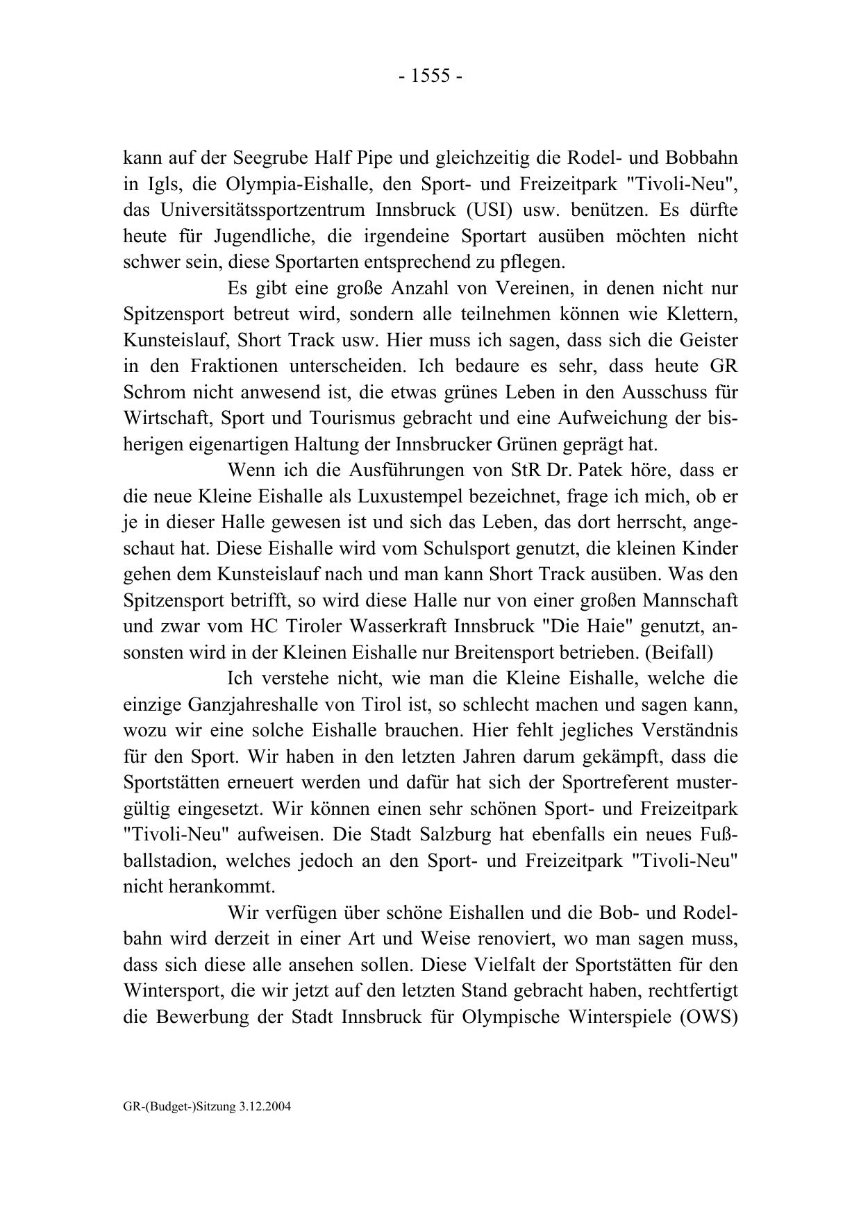 und zwar vom HC Tiroler Wasserkraft Innsbruck "Die Haie" genutzt, ansonsten wird in der Kleinen Eishalle nur Breitensport betrieben. (Beifall)
