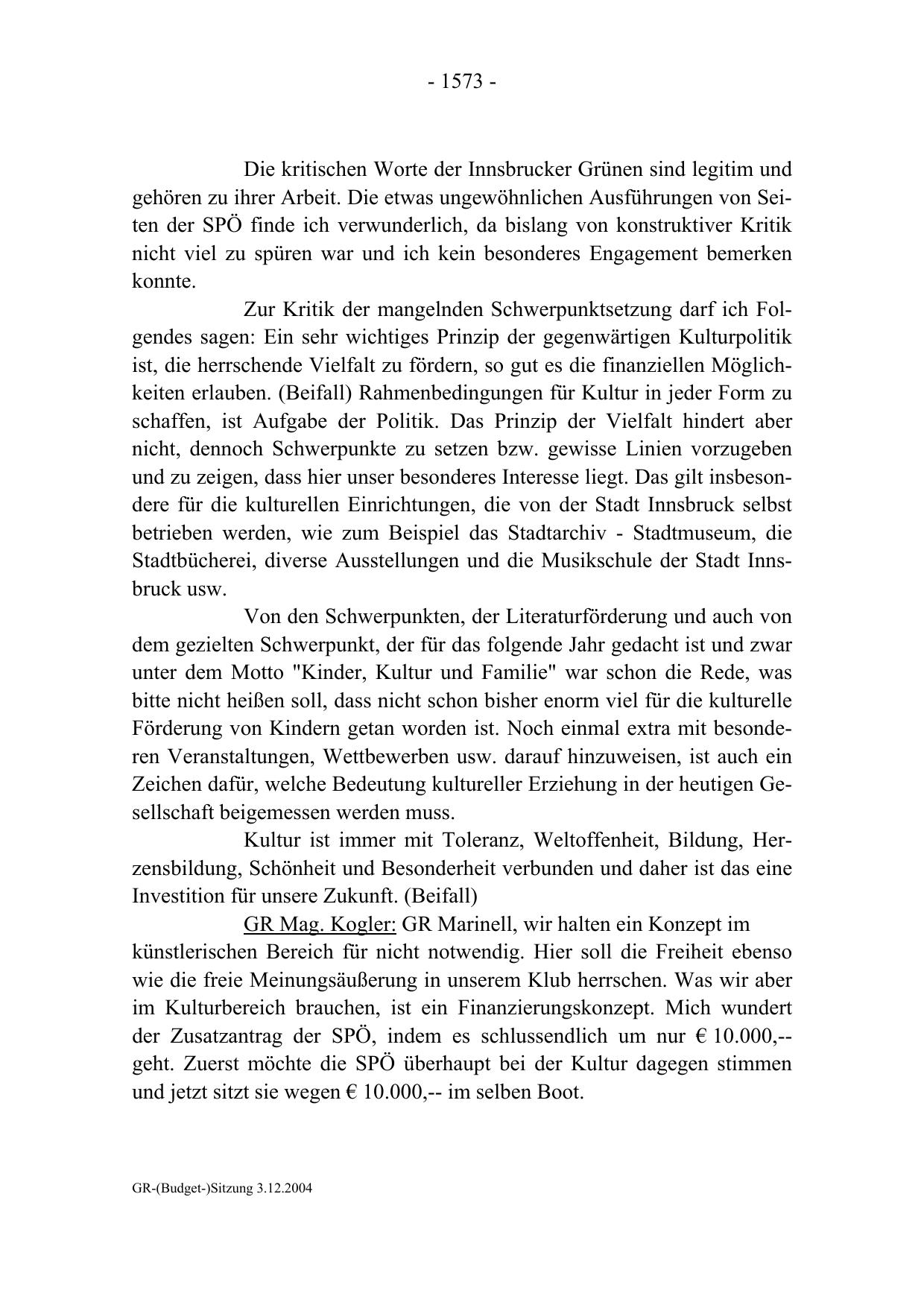 und zu zeigen, dass hier unser besonderes Interesse liegt. Das gilt insbesondere für die kulturellen Einrichtungen, die von der Stadt Innsbruck selbst