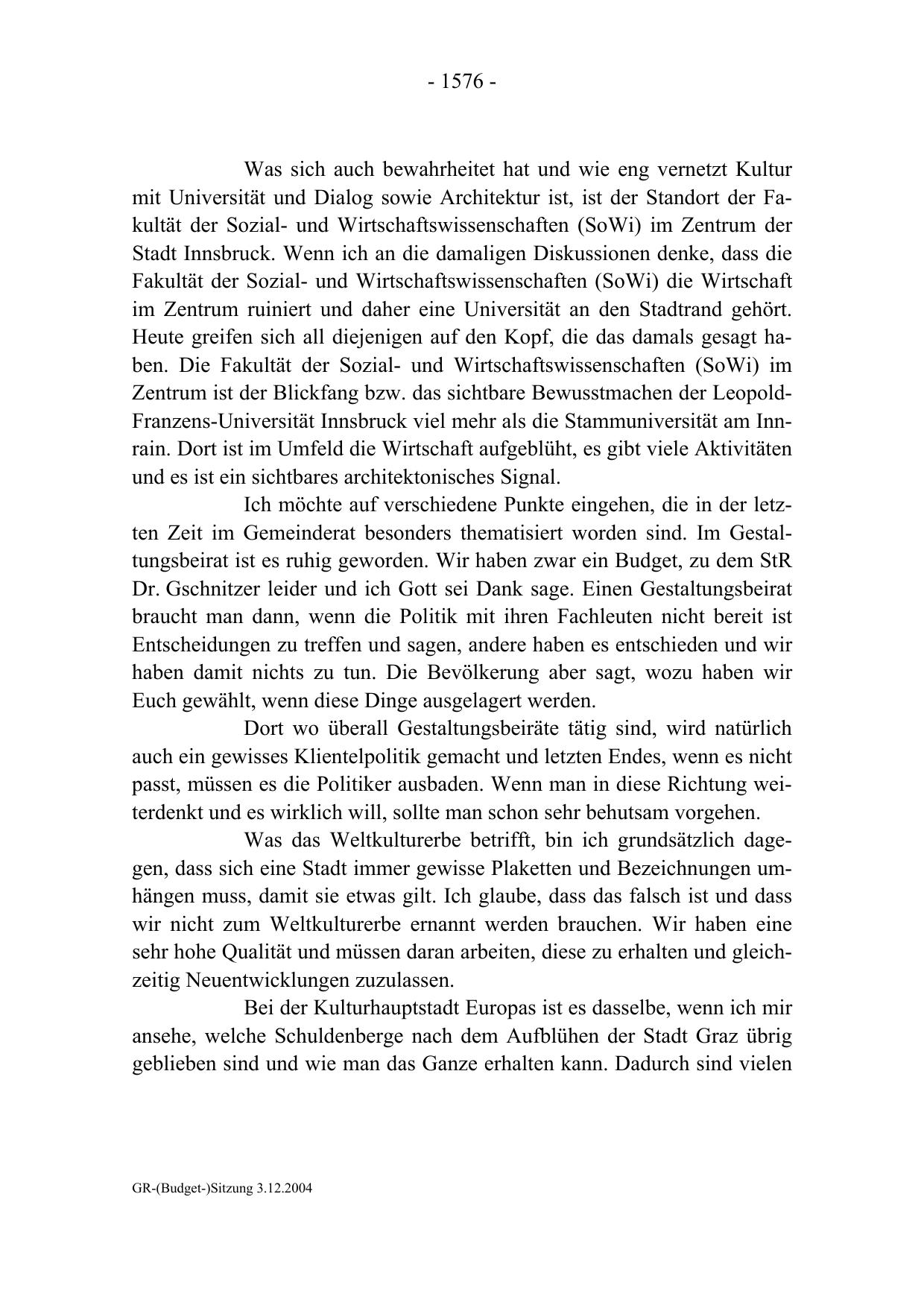 Dr. Gschnitzer leider und ich Gott sei Dank sage. Einen Gestaltungsbeirat