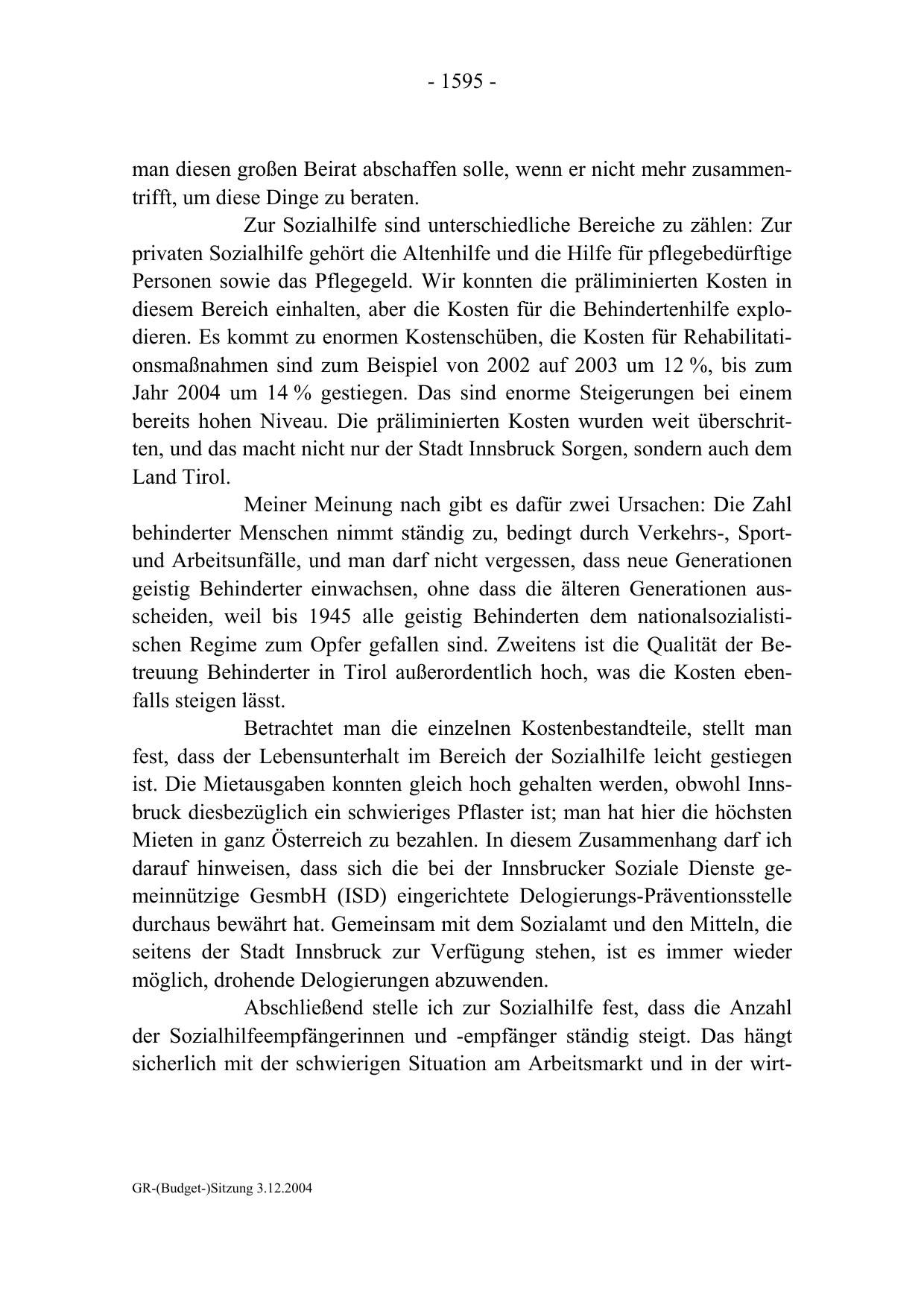 geistig Behinderter einwachsen, ohne dass die älteren Generationen ausscheiden, weil bis 1945 alle geistig Behinderten dem nationalsozialistischen Regime zum Opfer gefallen sind. Zweitens ist die Qualität der Betreuung Behinderter in Tirol außerordentlich hoch, was die Kosten ebenfalls steigen lässt.
