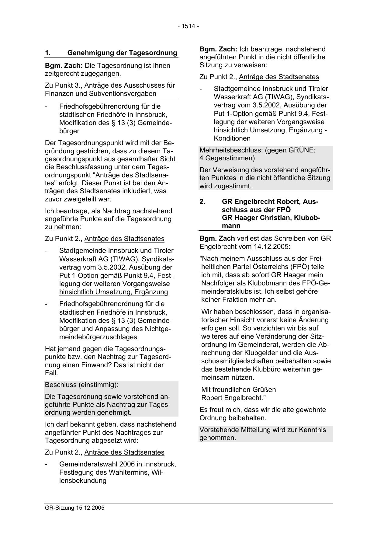 Bgm. Zach: Die Tagesordnung ist Ihnen
