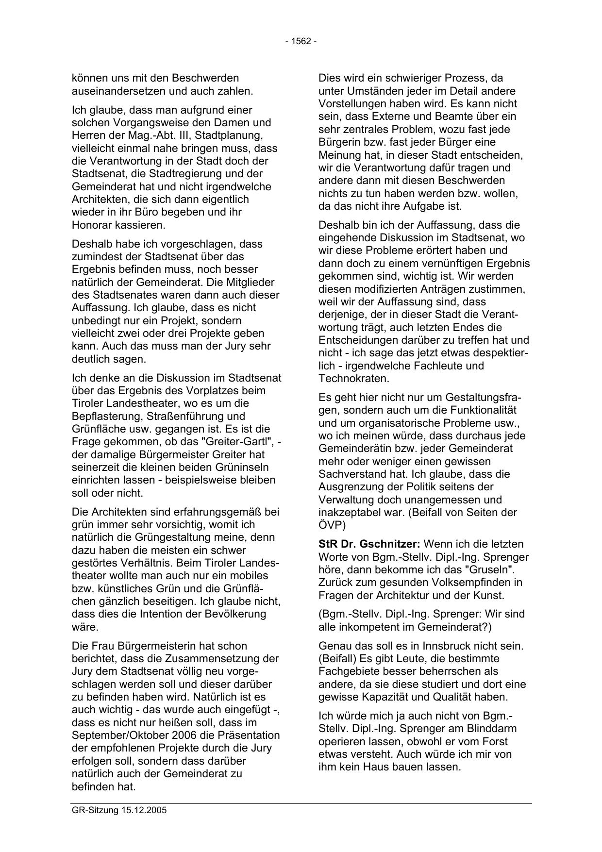 StR Dr. Gschnitzer: Wenn ich die letzten