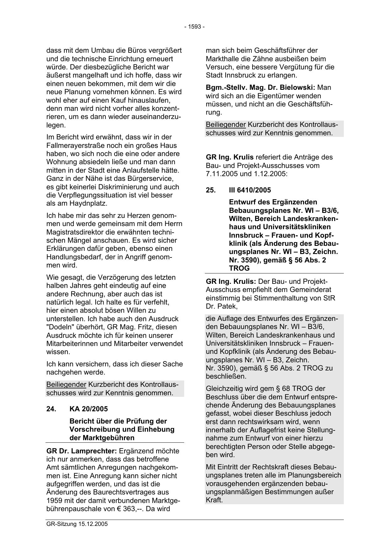 Innsbruck – Frauen- und Kopfklinik (als Änderung des Bebauungsplanes Nr. WI – B3, Zeichn.