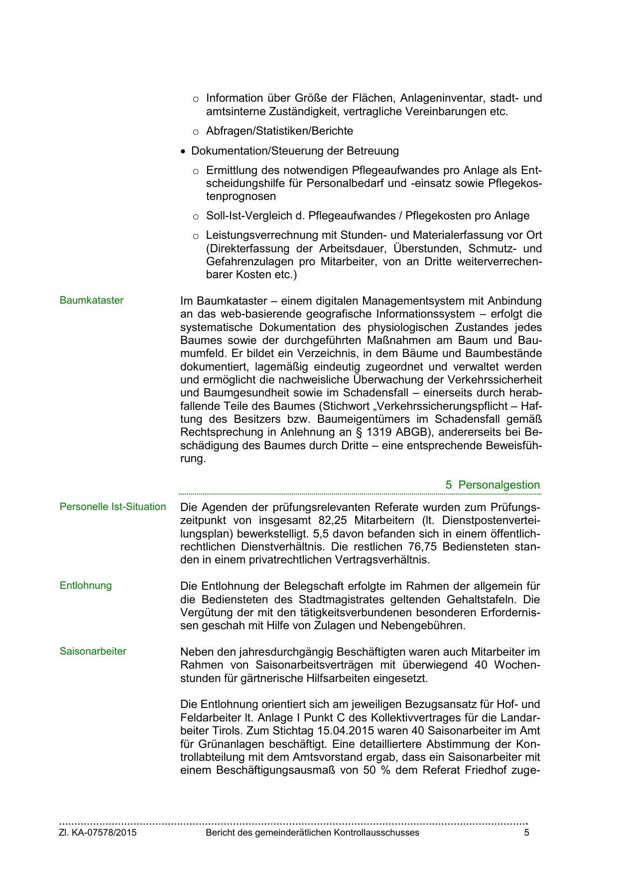 für Grünanlagen beschäftigt. Eine detailliertere Abstimmung der Kontrollabteilung mit dem Amtsvorstand ergab, dass ein Saisonarbeiter mit
