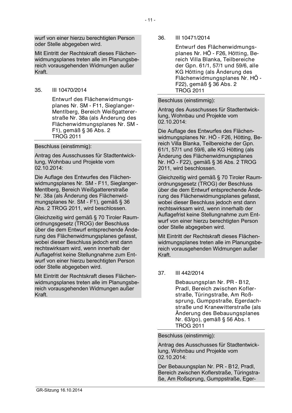 Gleichzeitig wird gemäß § 70 Tiroler Raumordnungsgesetz (TROG) der Beschluss