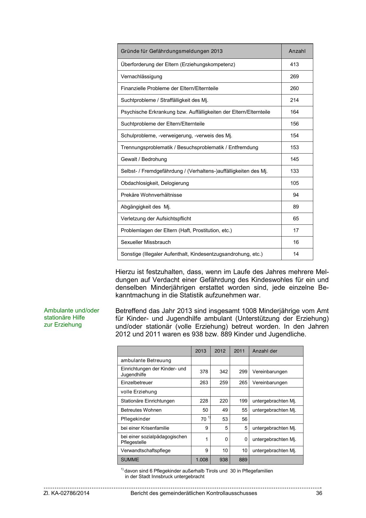 Hierzu ist festzuhalten, dass, wenn im Laufe des Jahres mehrere Meldungen auf Verdacht einer Gefährdung des Kindeswohles für ein und