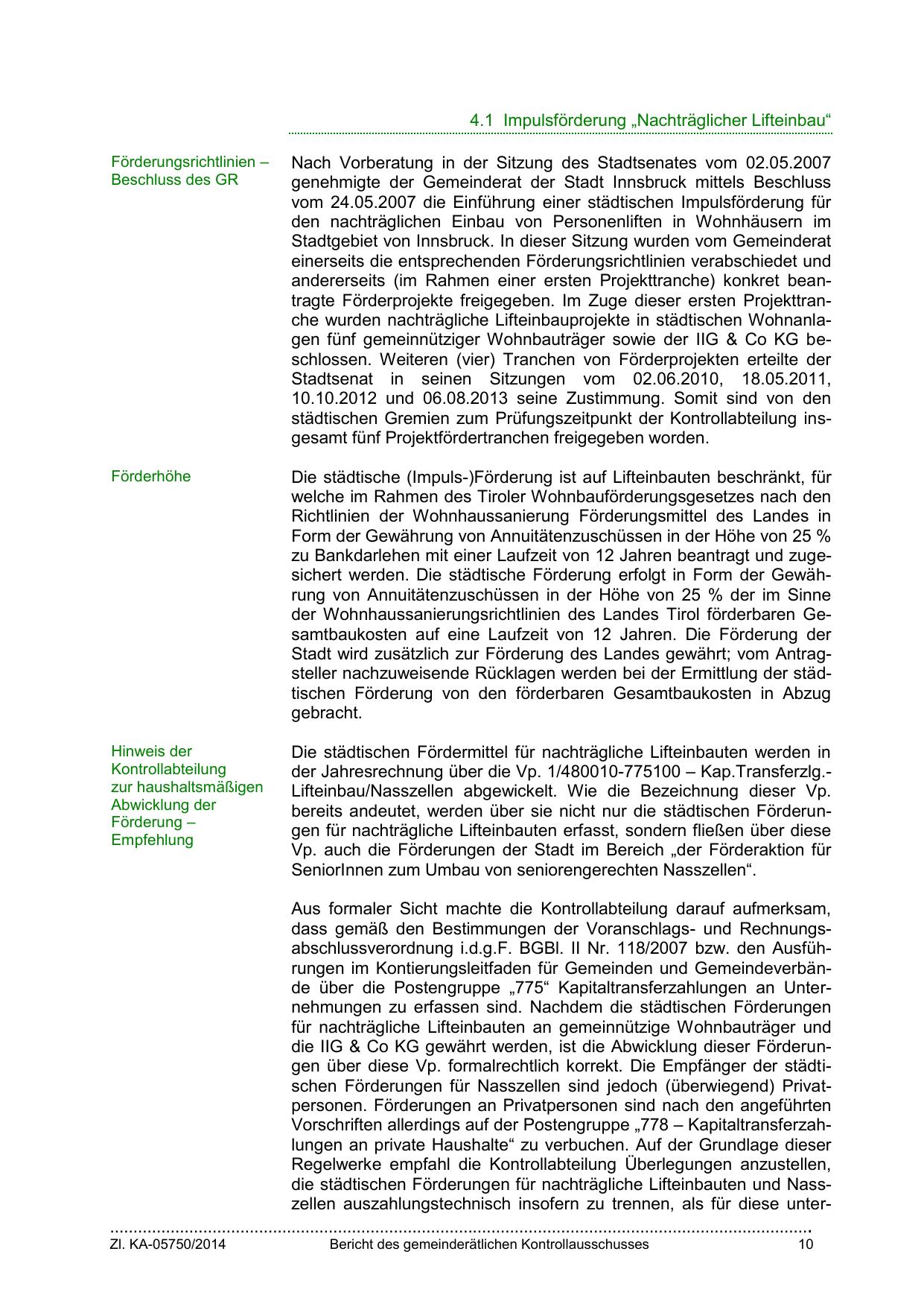 die IIG & Co KG gewährt werden, ist die Abwicklung dieser Förderungen über diese Vp. formalrechtlich korrekt. Die Empfänger der städtischen Förderungen für Nasszellen sind jedoch (überwiegend) Privatpersonen. Förderungen an Privatpersonen sind nach den angeführten