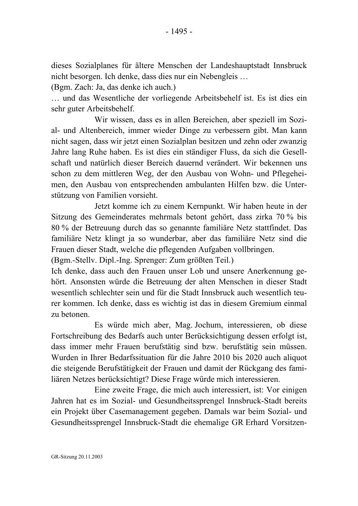 Gesundheitssprengel Innsbruck-Stadt die ehemalige GR Erhard Vorsitzen-