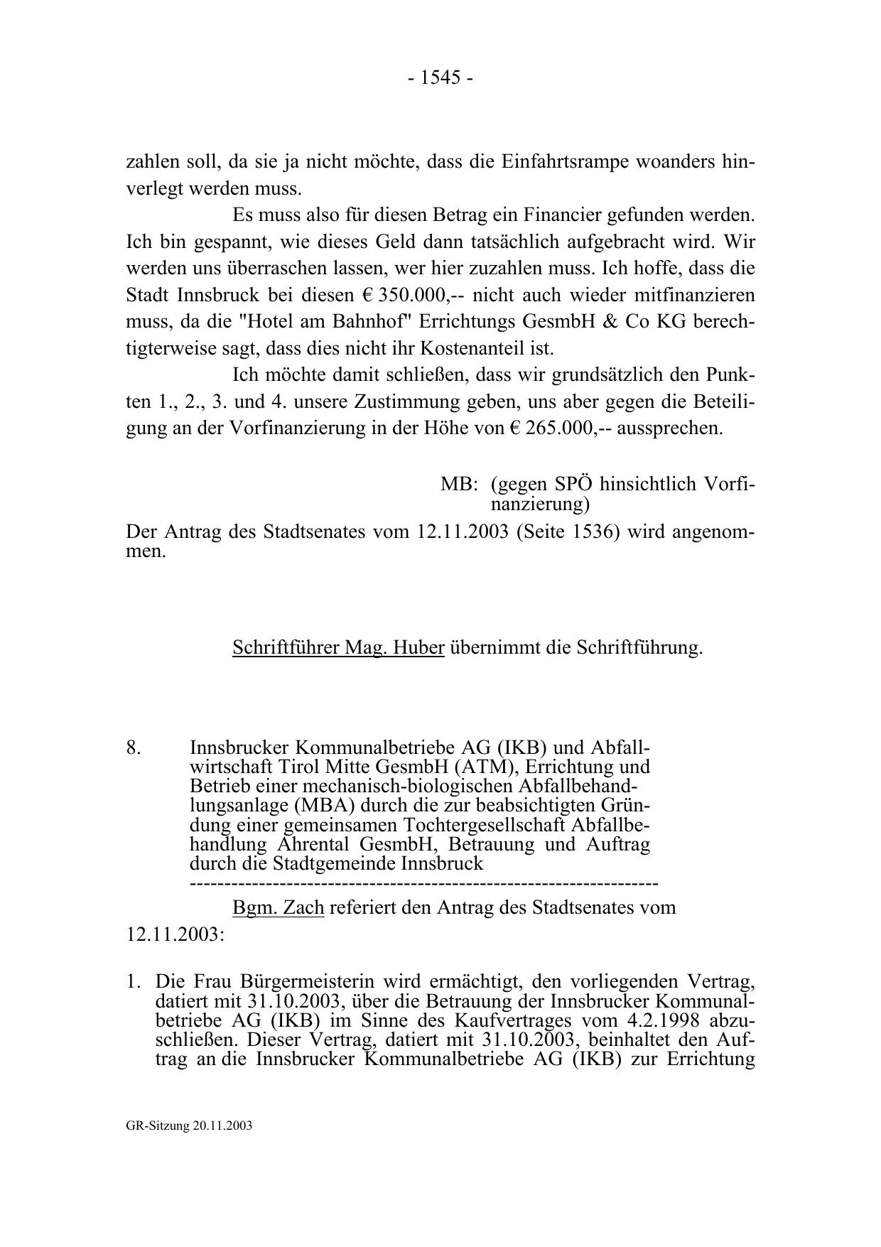 Der Antrag des Stadtsenates vom 12.11.2003 (Seite 1536) wird angenommen.