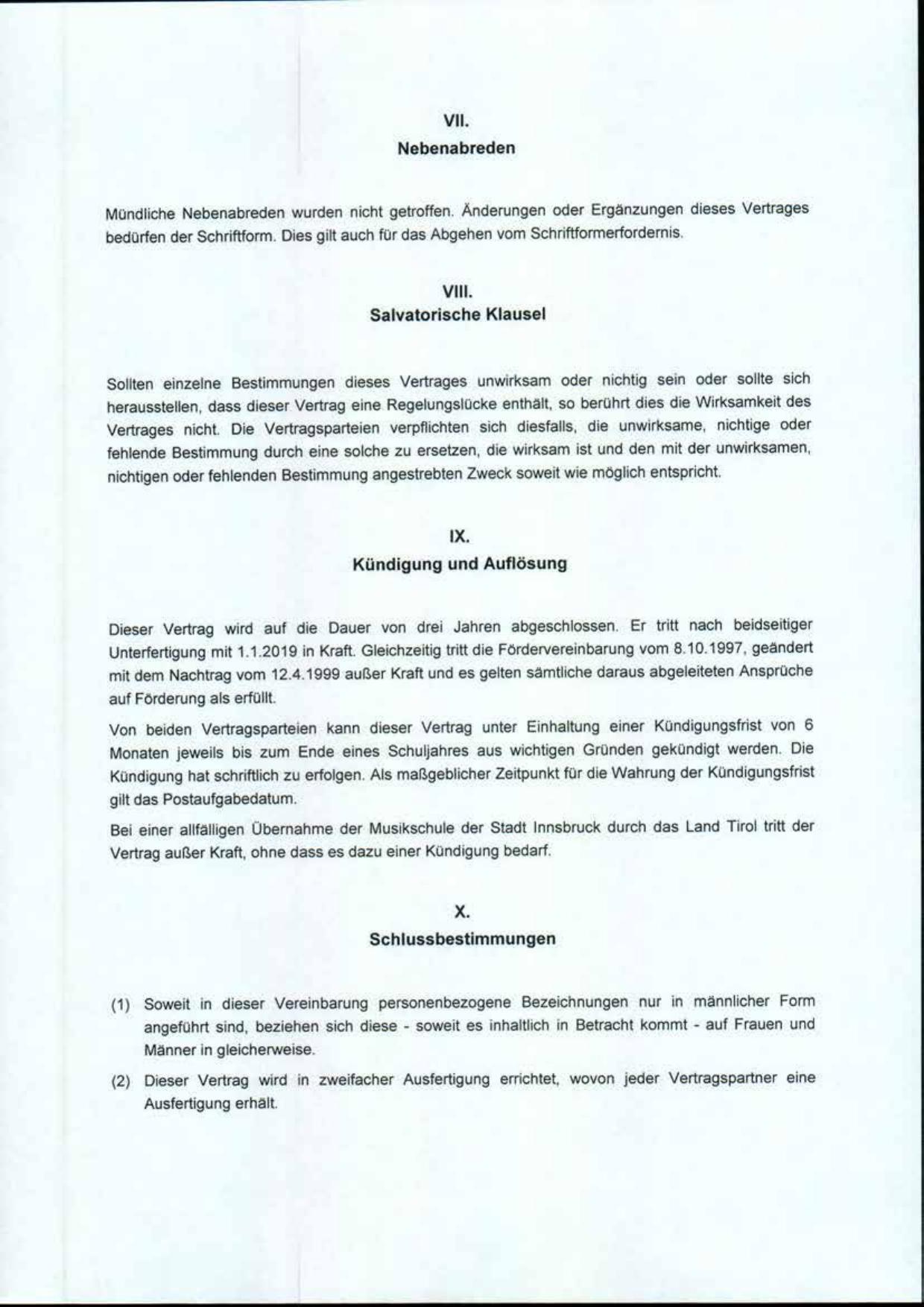 Unterfertigung mit 1.1.2019 in Kraft. Gleichzeitig tritt die FOrdervereinbarung vom 8.10.1997, geendert