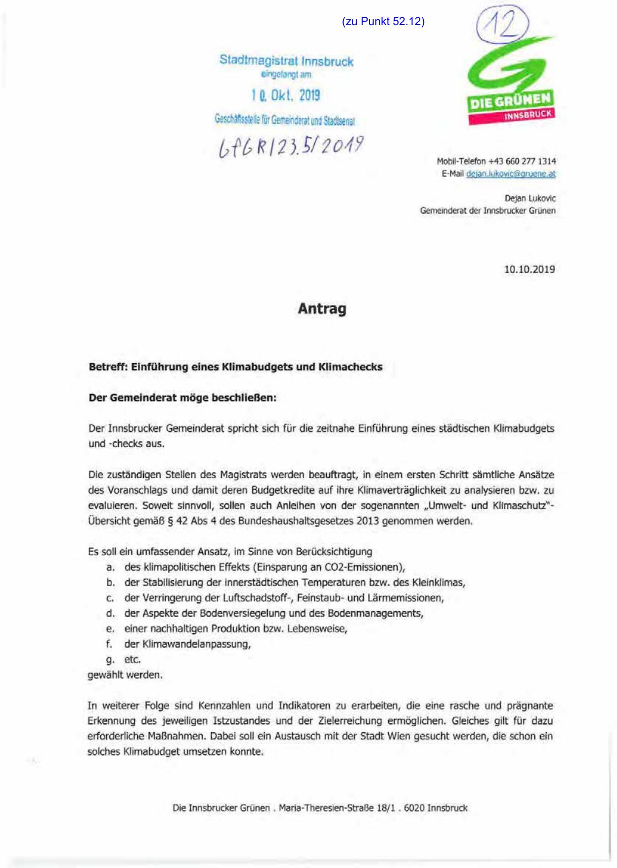 Der Innsbrucker Gemeinderat spricht sich für die zeitnahe Einführung eines städtischen Klimabudgets