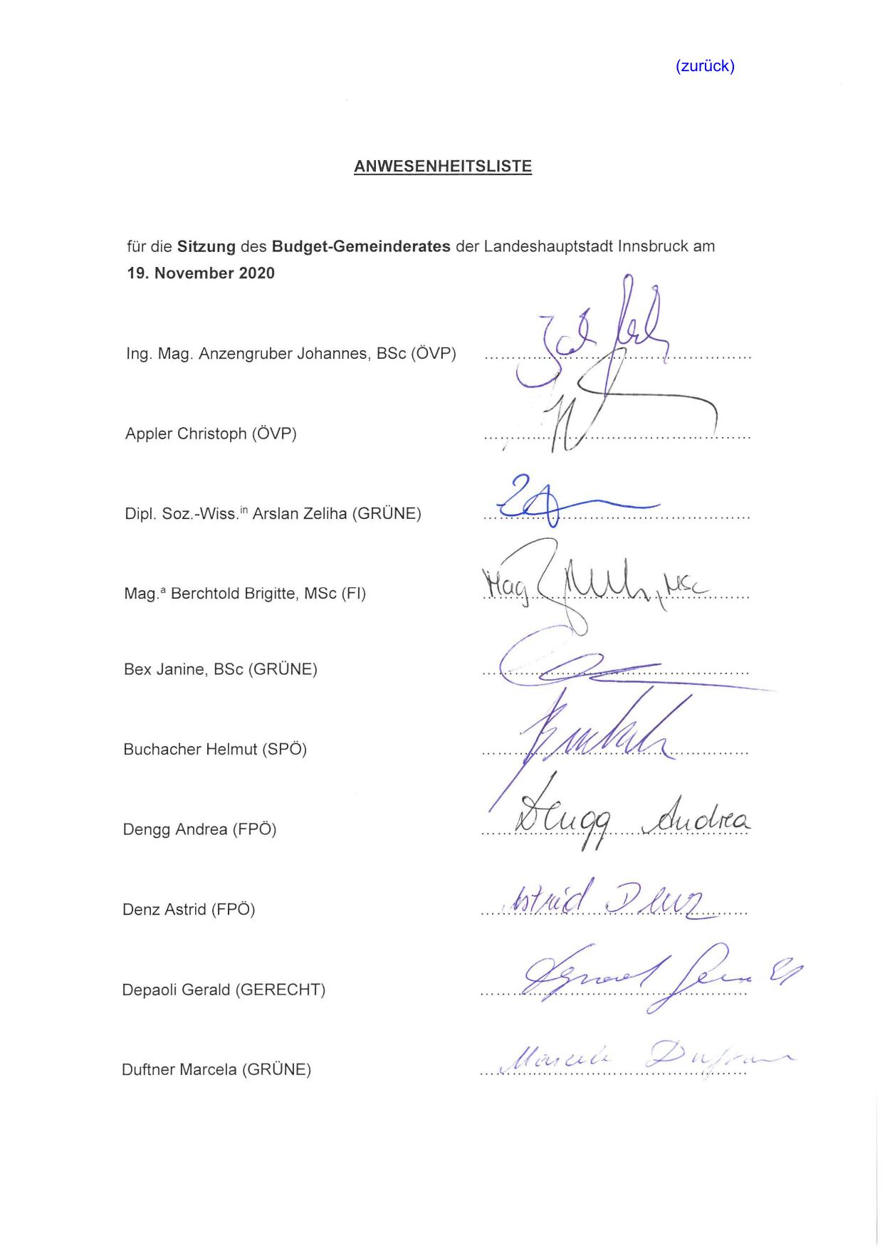 für die Sitzung des Budget-Gemeinderates der Landeshauptstadt Innsbruck am