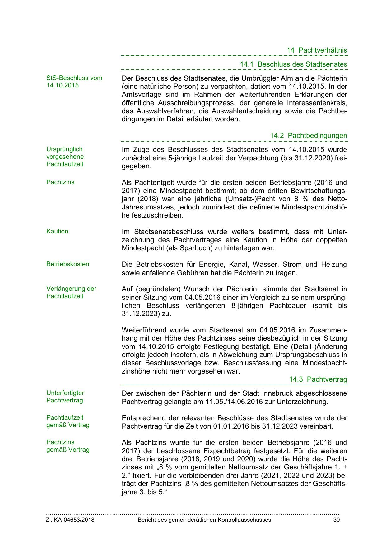 Der zwischen der Pächterin und der Stadt Innsbruck abgeschlossene