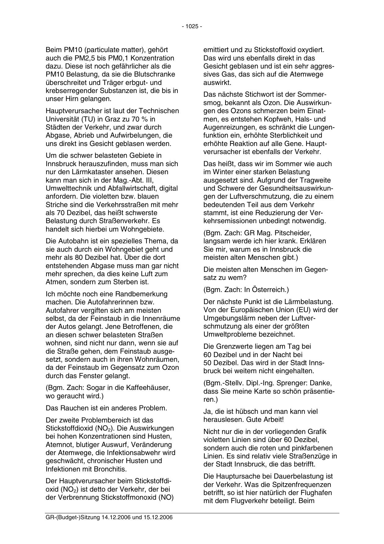 GR-(Budget-)Sitzung 14.12.2006 und 15.12.2006