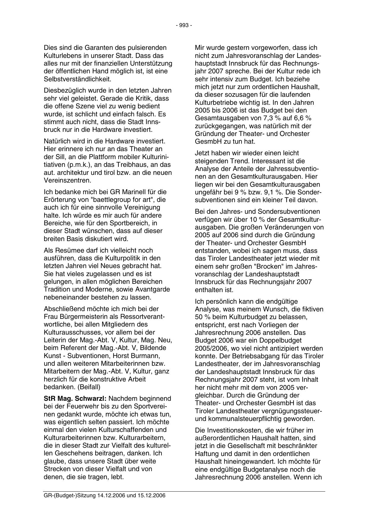 nicht zum Jahresvoranschlag der Landeshauptstadt Innsbruck für das Rechnungsjahr 2007 spreche. Bei der Kultur rede ich