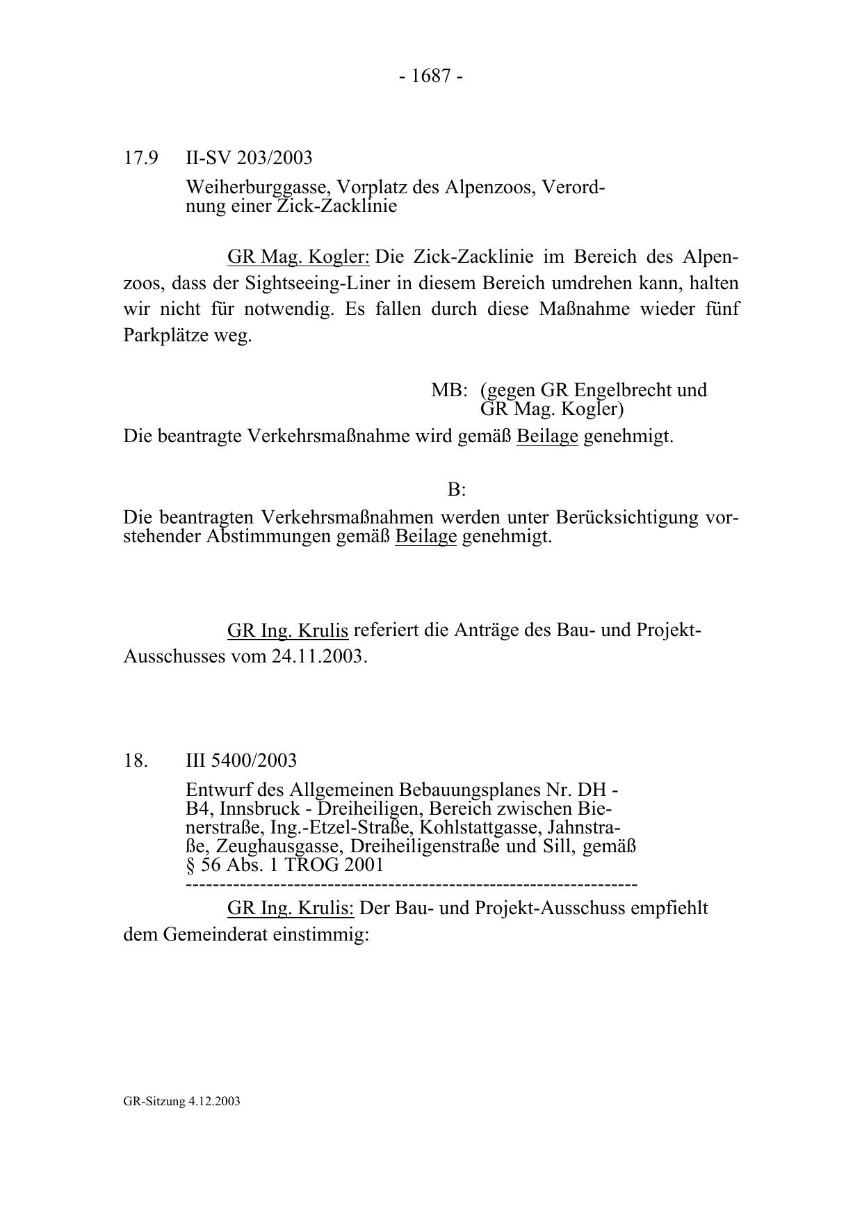 GR Ing. Krulis referiert die Anträge des Bau- und ProjektAusschusses vom 24.11.2003.