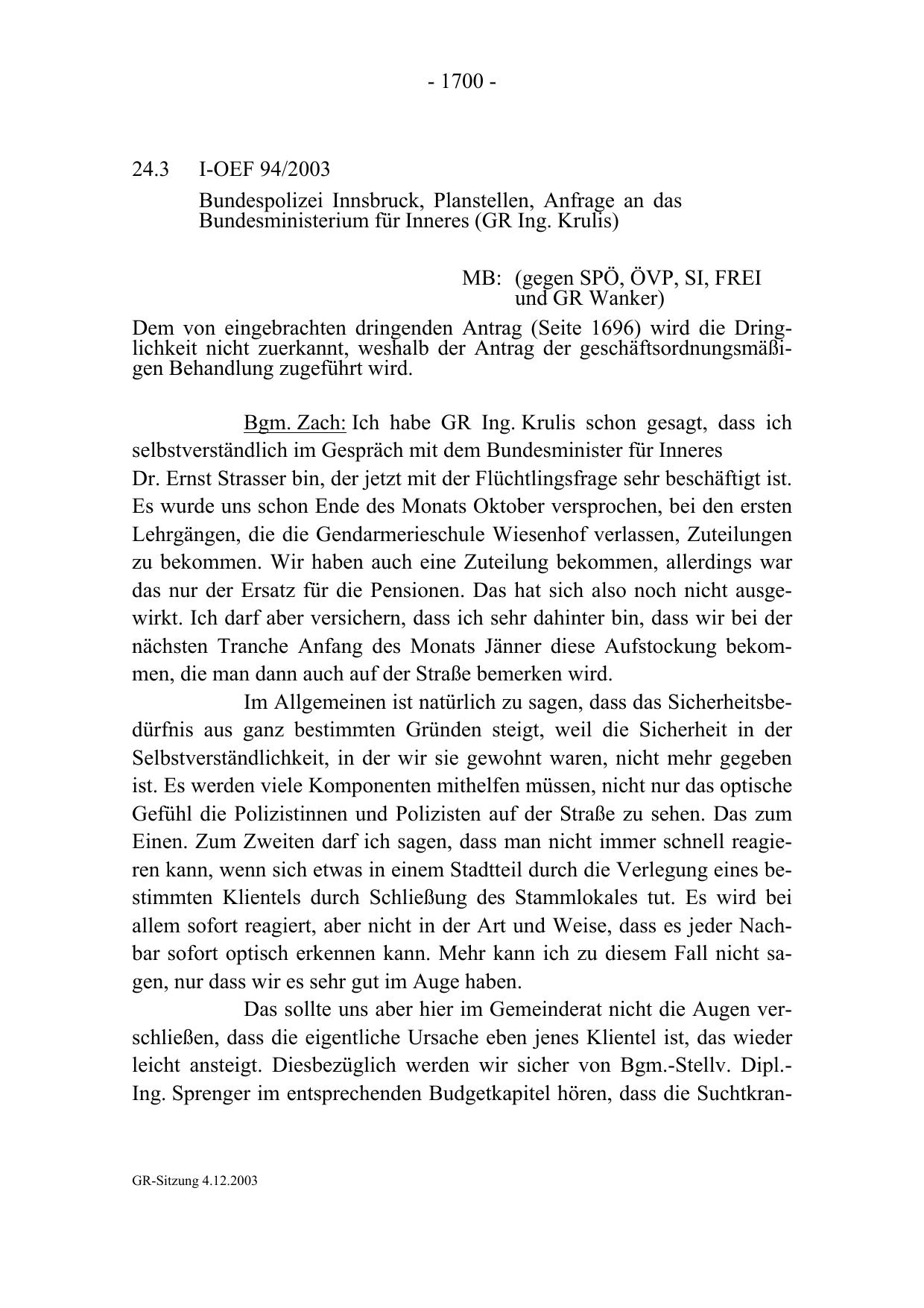 Dem von eingebrachten dringenden Antrag (Seite 1696) wird die Dringlichkeit nicht zuerkannt, weshalb der Antrag der geschäftsordnungsmäßigen Behandlung zugeführt wird.
