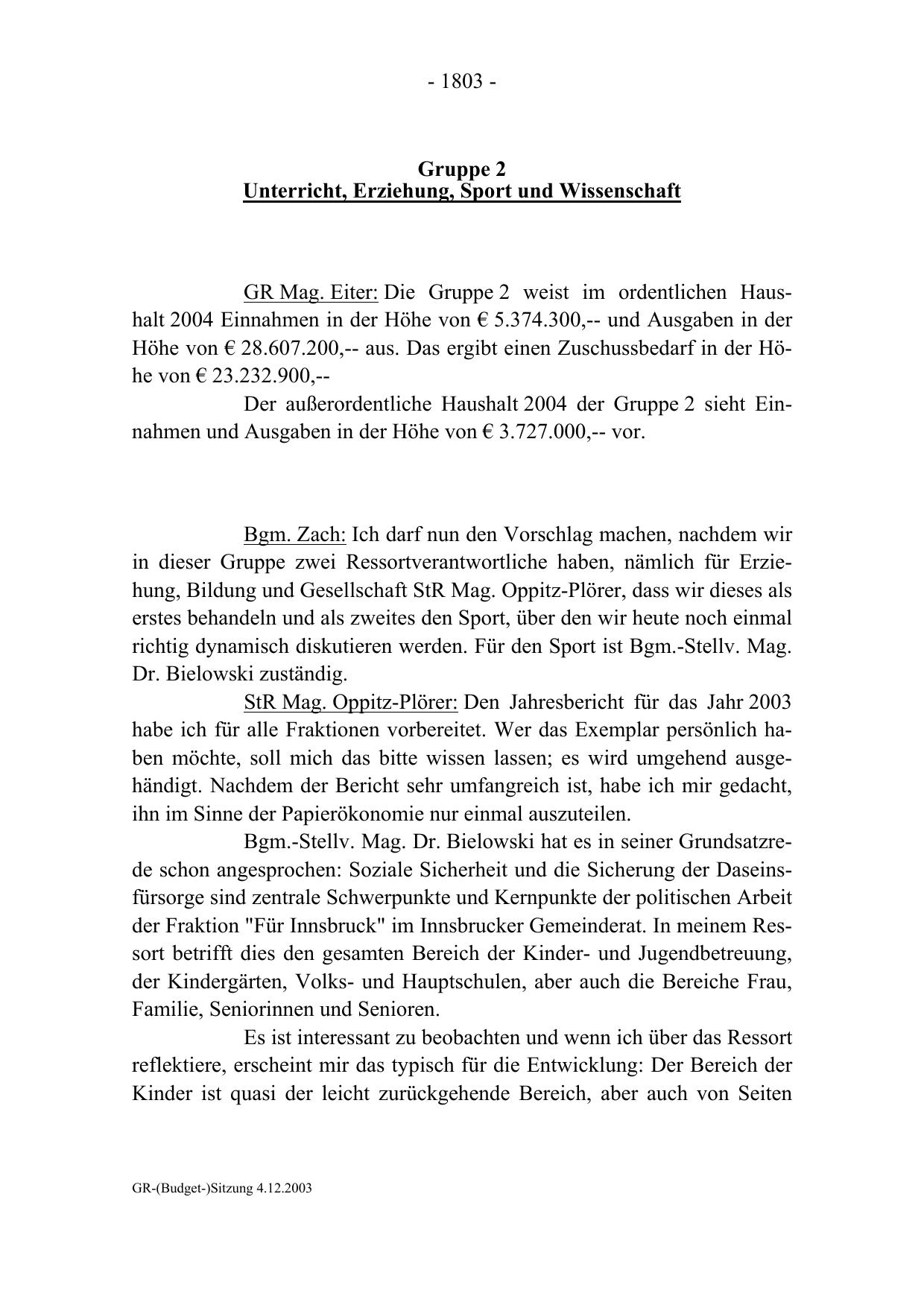 StR Mag. Oppitz-Plörer: Den Jahresbericht für das Jahr 2003